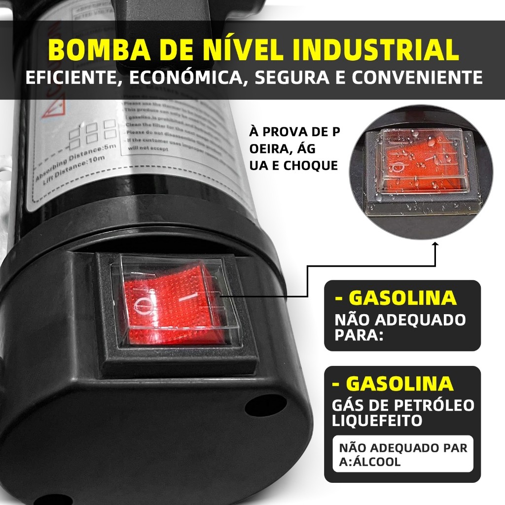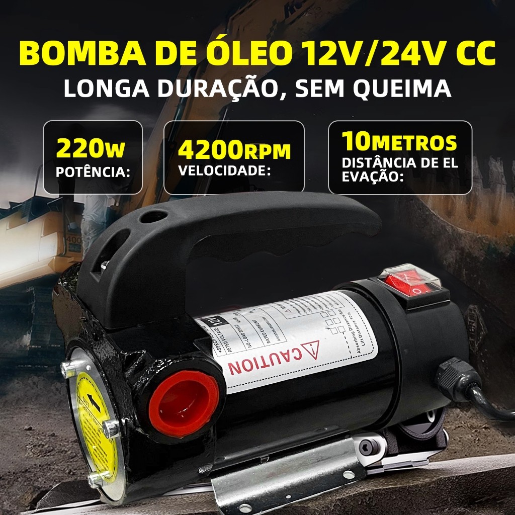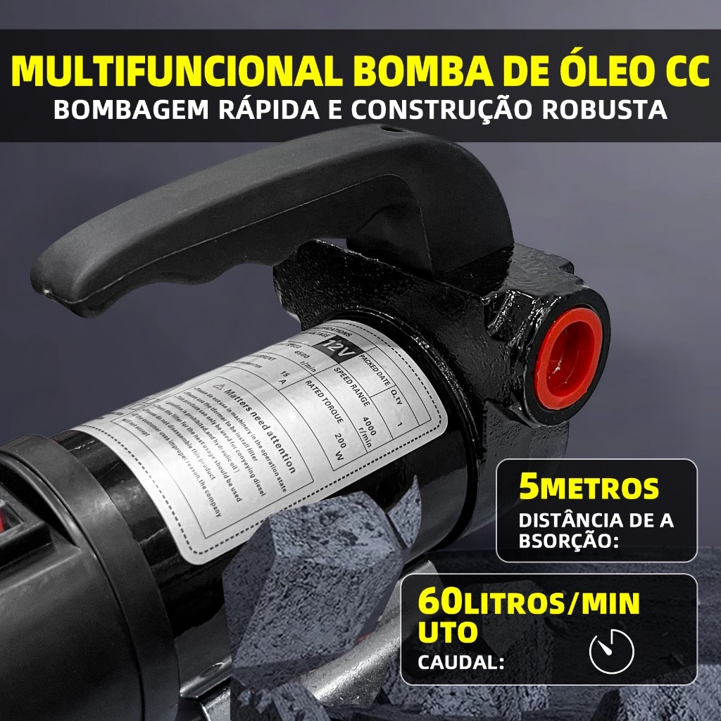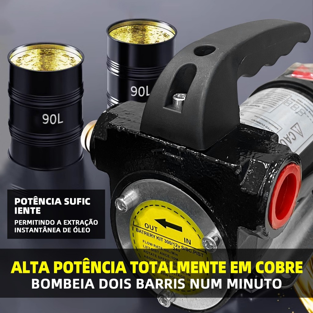 Bomba Elétrica Para Transferência De Óleo Diesel 12V/24V CC, 220W Alta Potência, Kit Completo para Transferência Rápida
