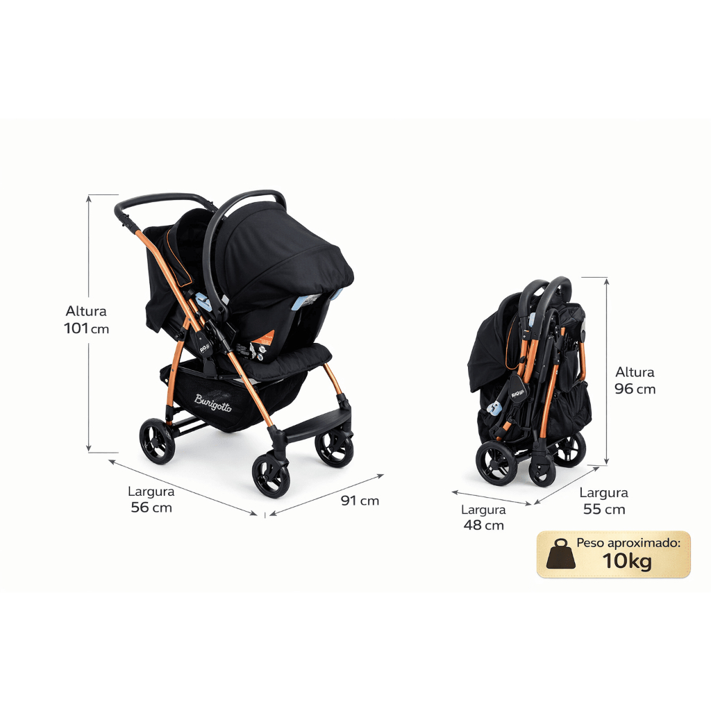 Carrinho Bebê Burigotto Reversível Rio K Travel System Suporta Até 22kg