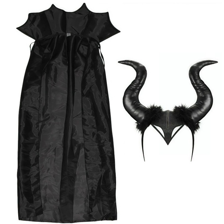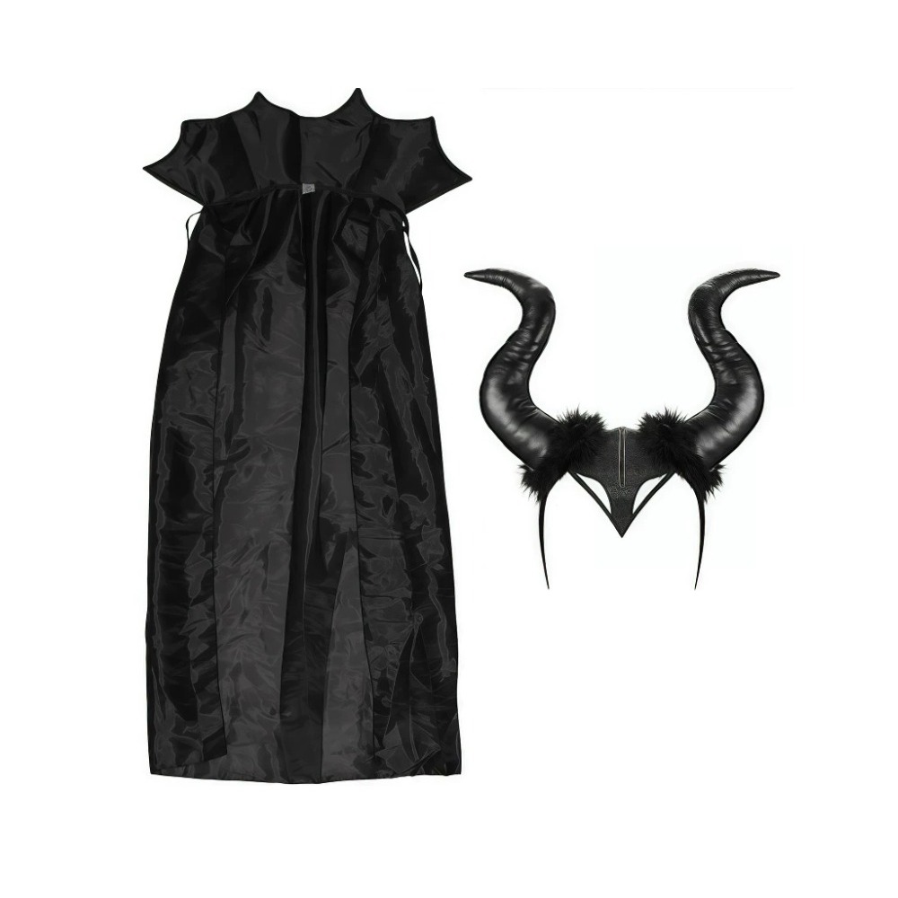 Fantasia Bruxa Poderosa Cosplay Capa Preta E Chifre Bruxa Feiticeira Sombria