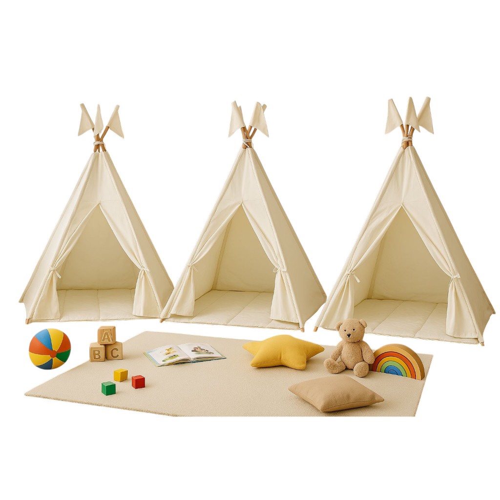 KIT 3 Cabana tenda barraca de índio infantil + tapete + bandeiras