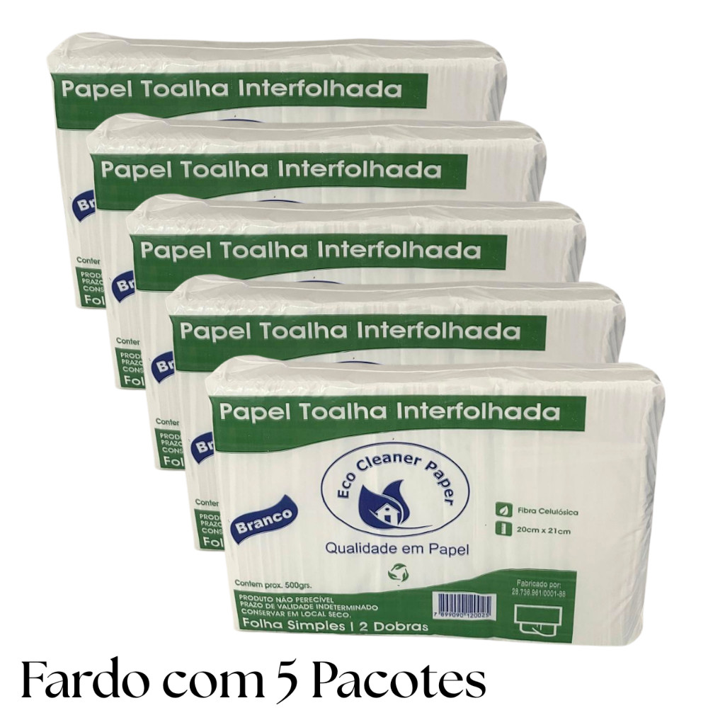Papel Toalha Interfolhado Branco 5.000 Folhas 20x21cm Direto do Fabricante Envio Imediato