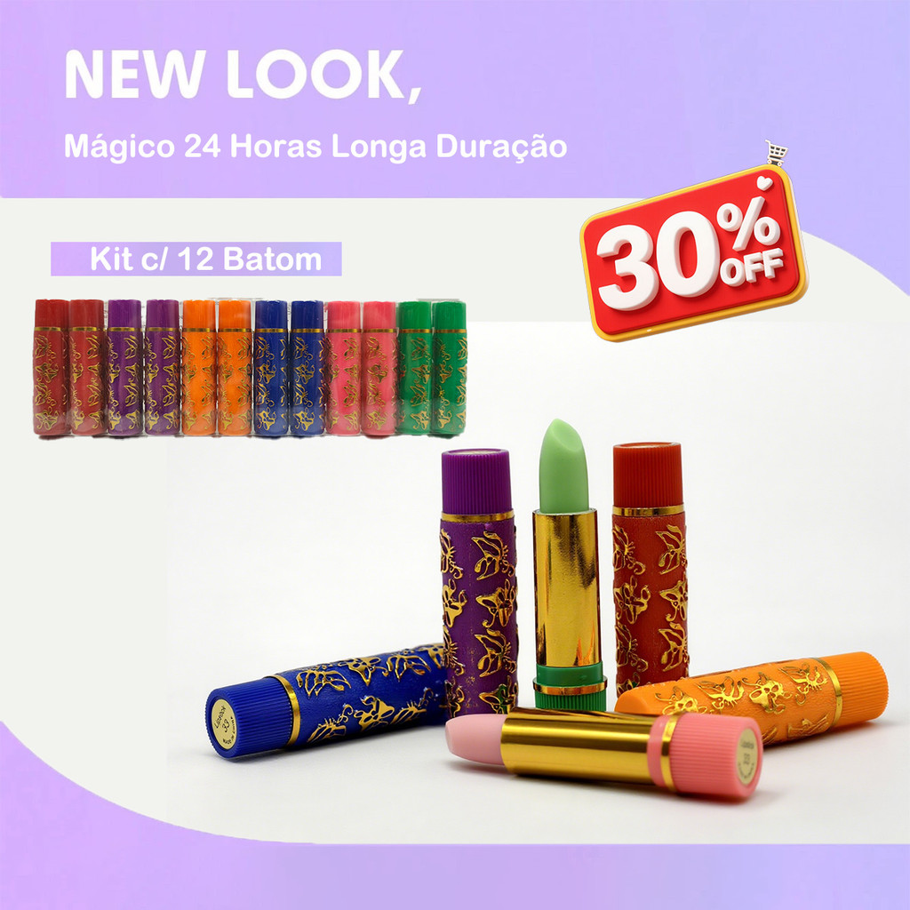 Kit 6 ou 12 Unidades Batom Mágico da Vovó | Longa Duração 24h Colorido