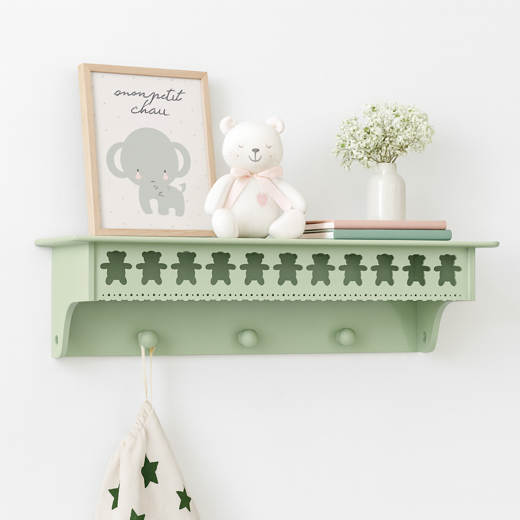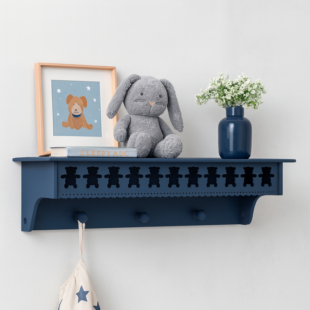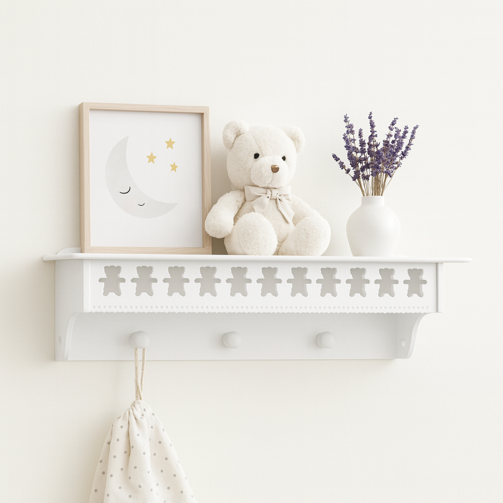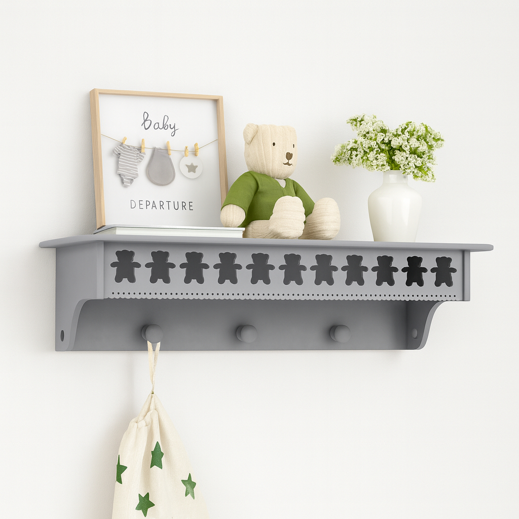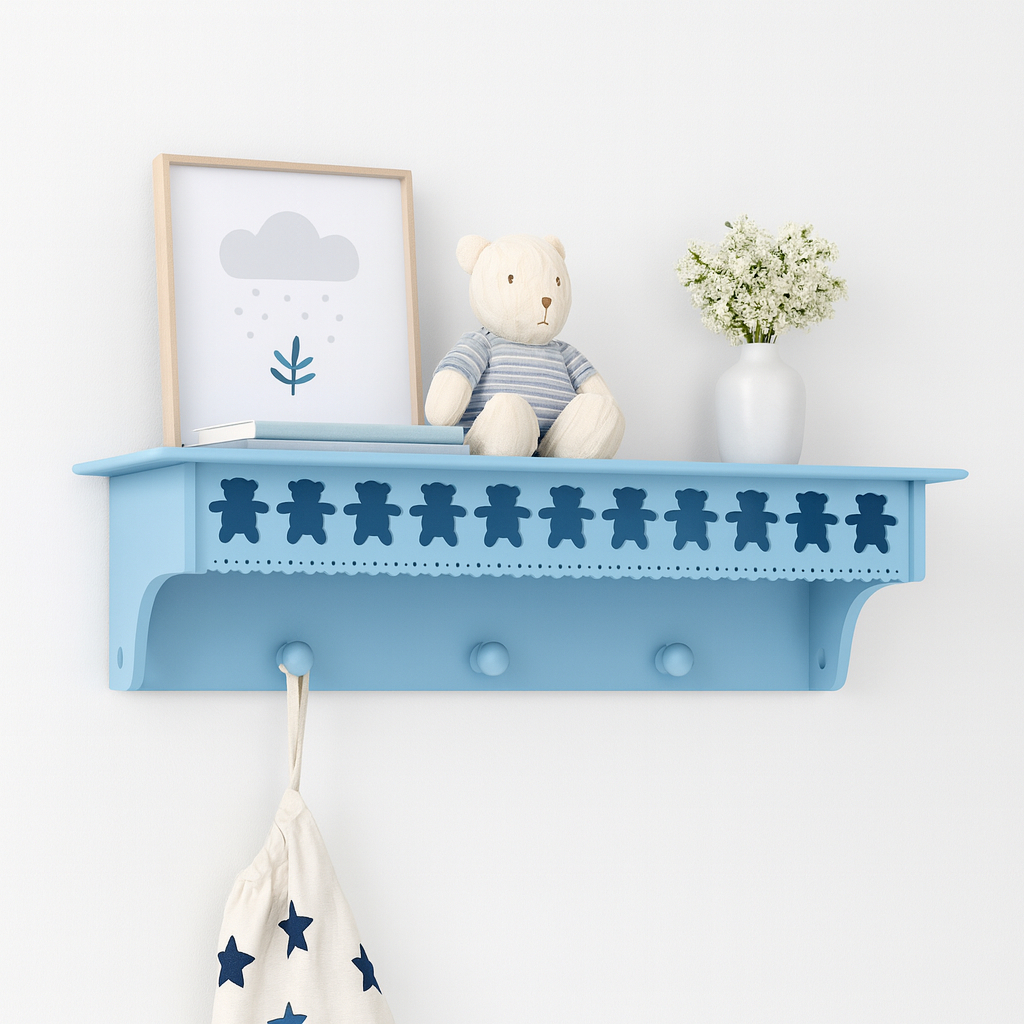 Prateleira com cabideiro urso Teddy 60cm MDF