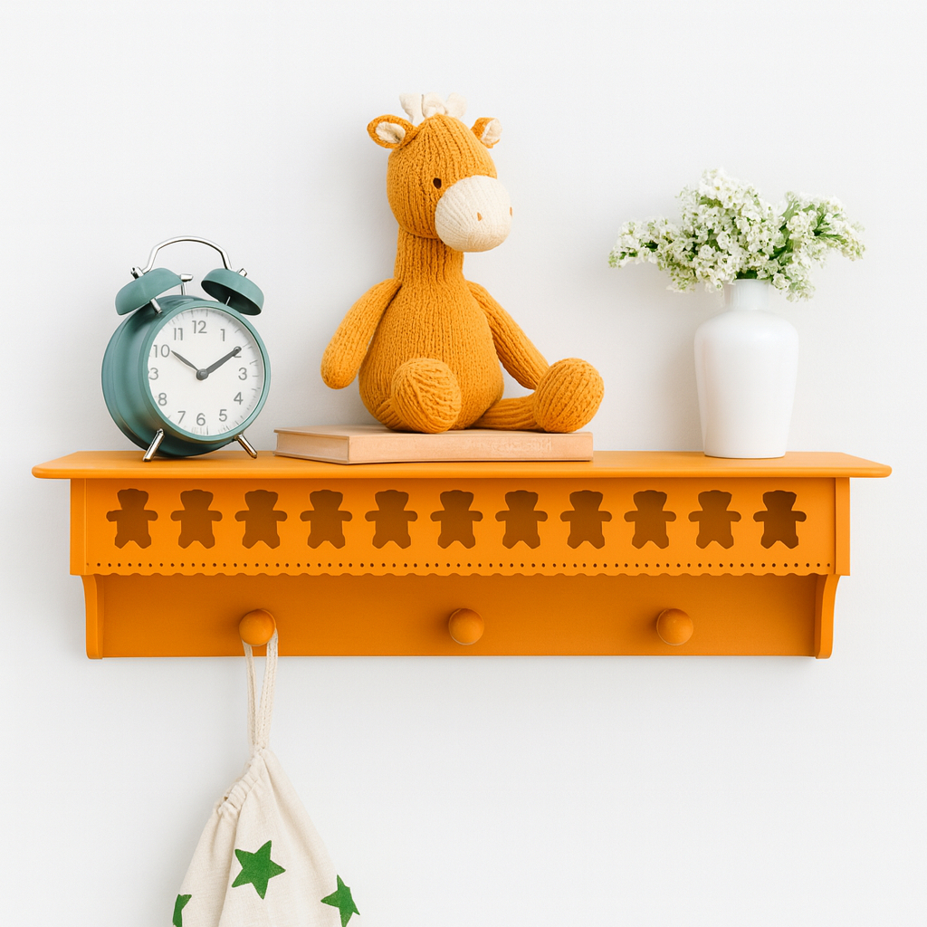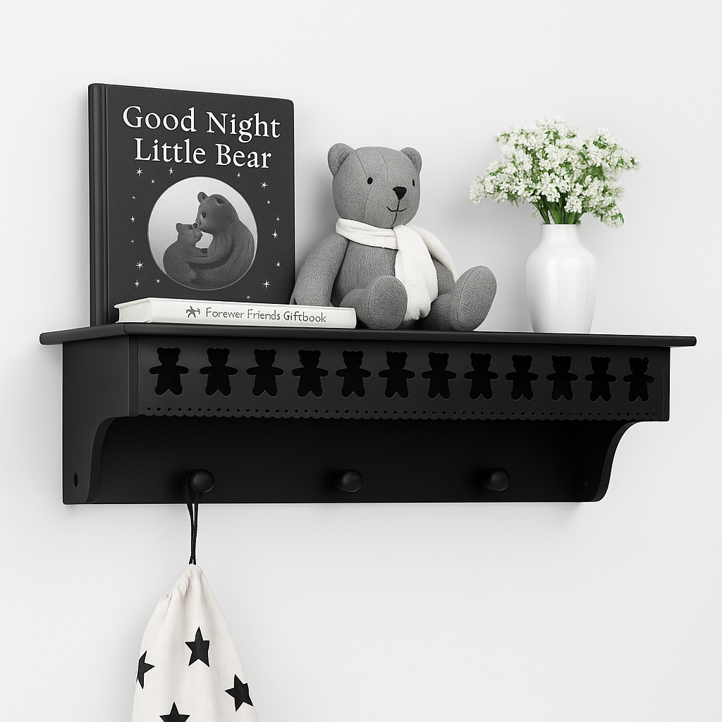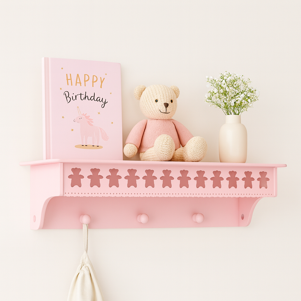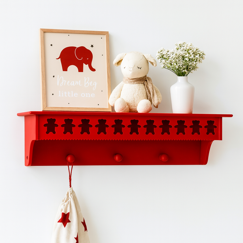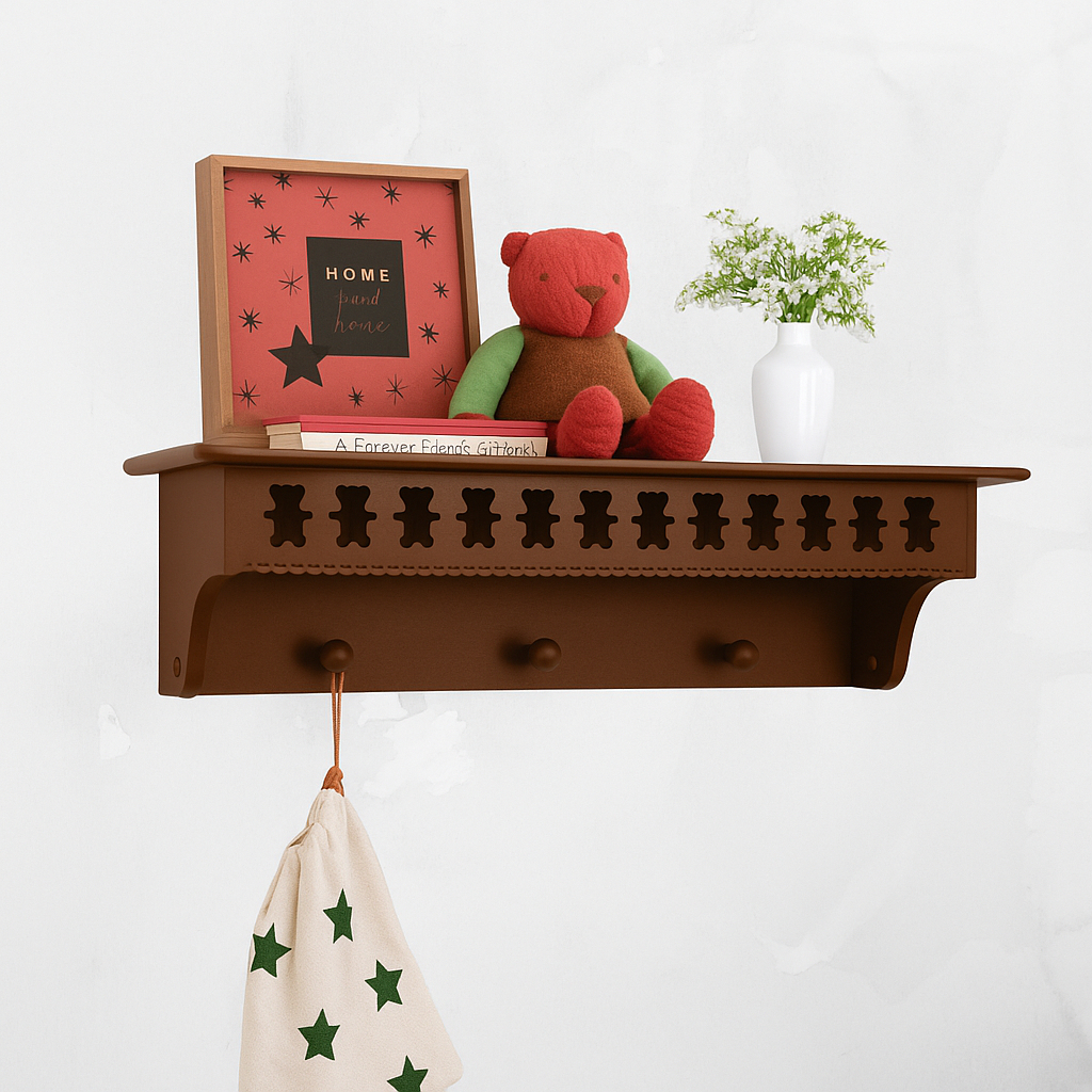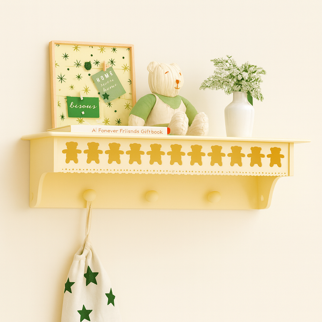 Prateleira com cabideiro urso Teddy 60cm MDF