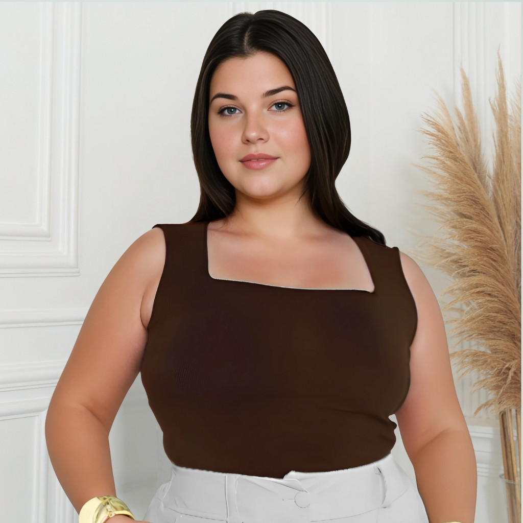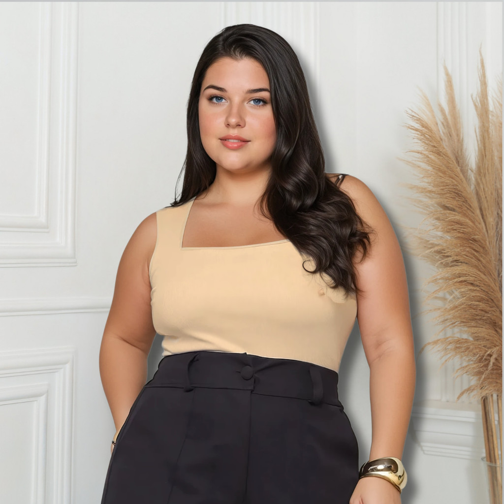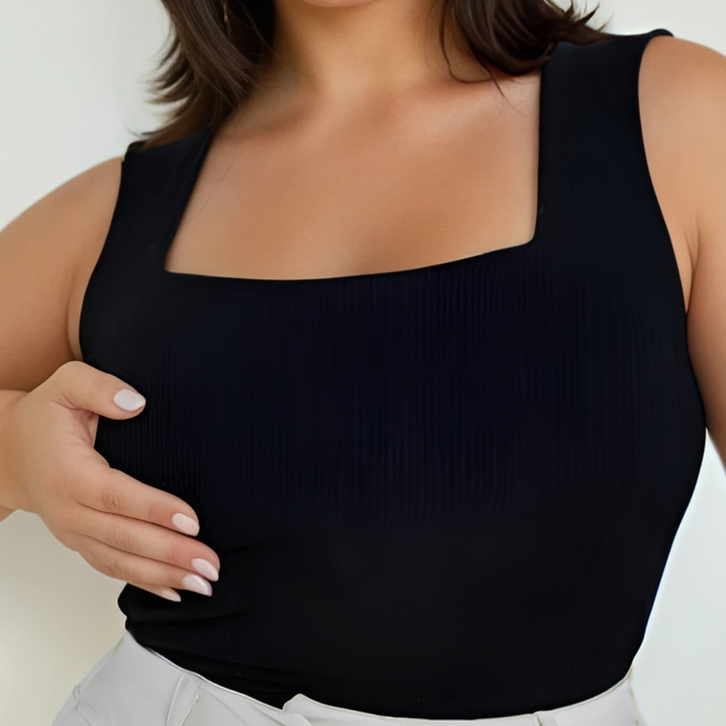 Blusa Feminina Plus Size Regata Decote Quadrado Estilosa Básica Casual