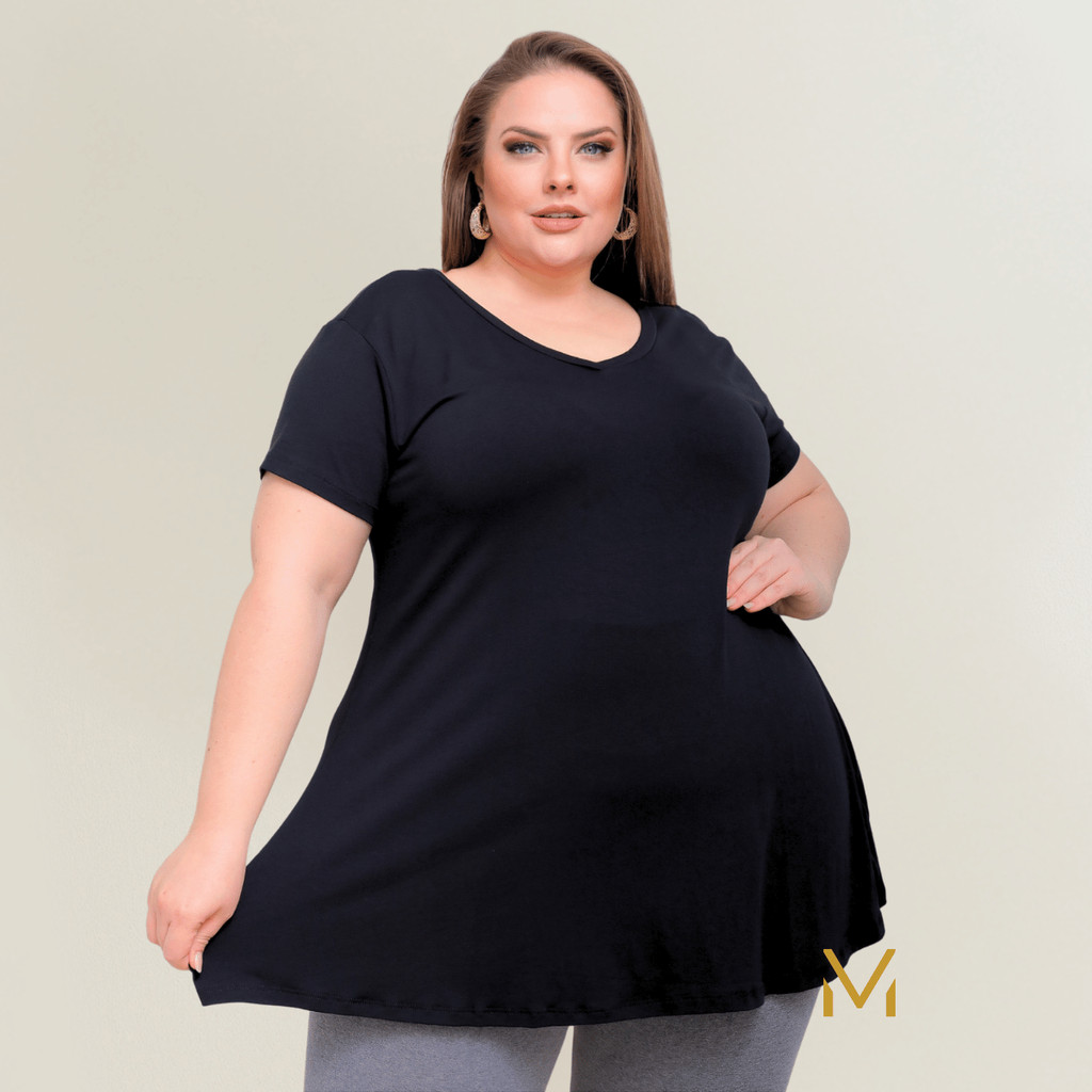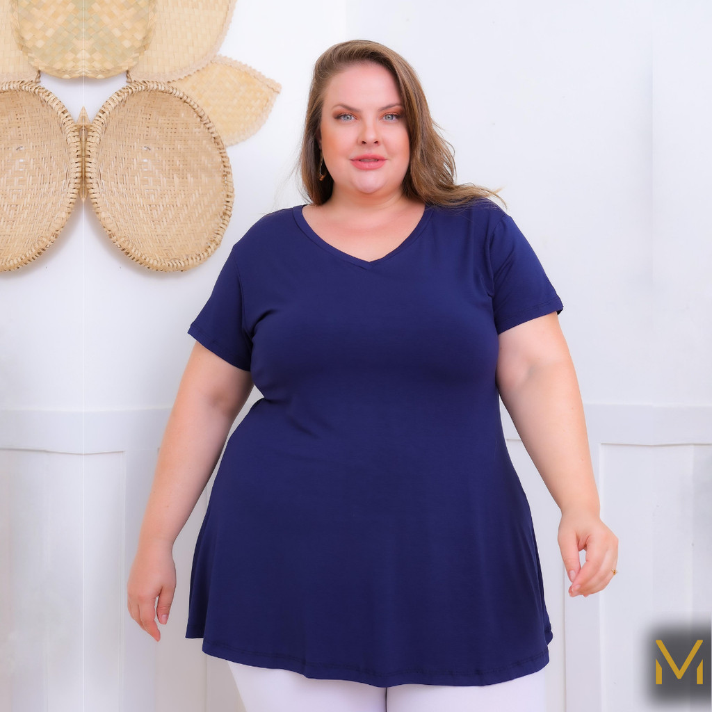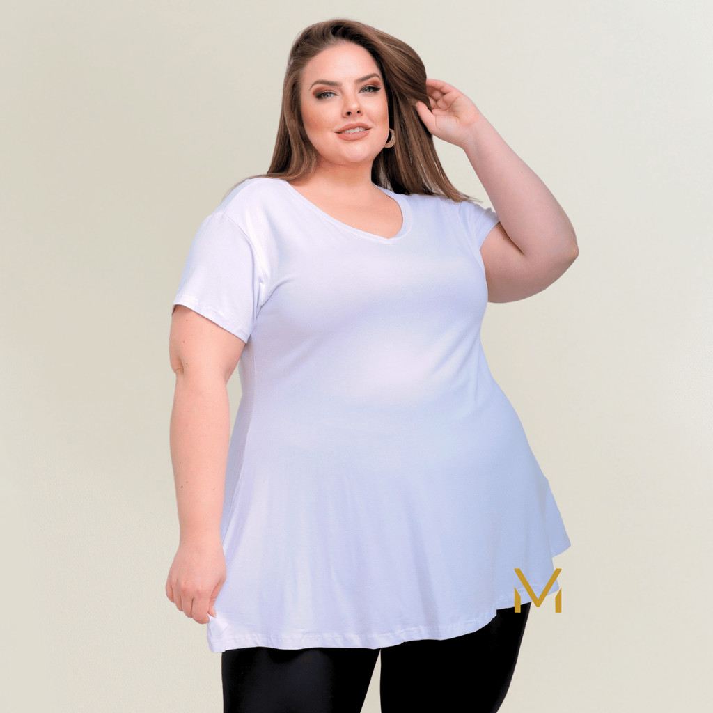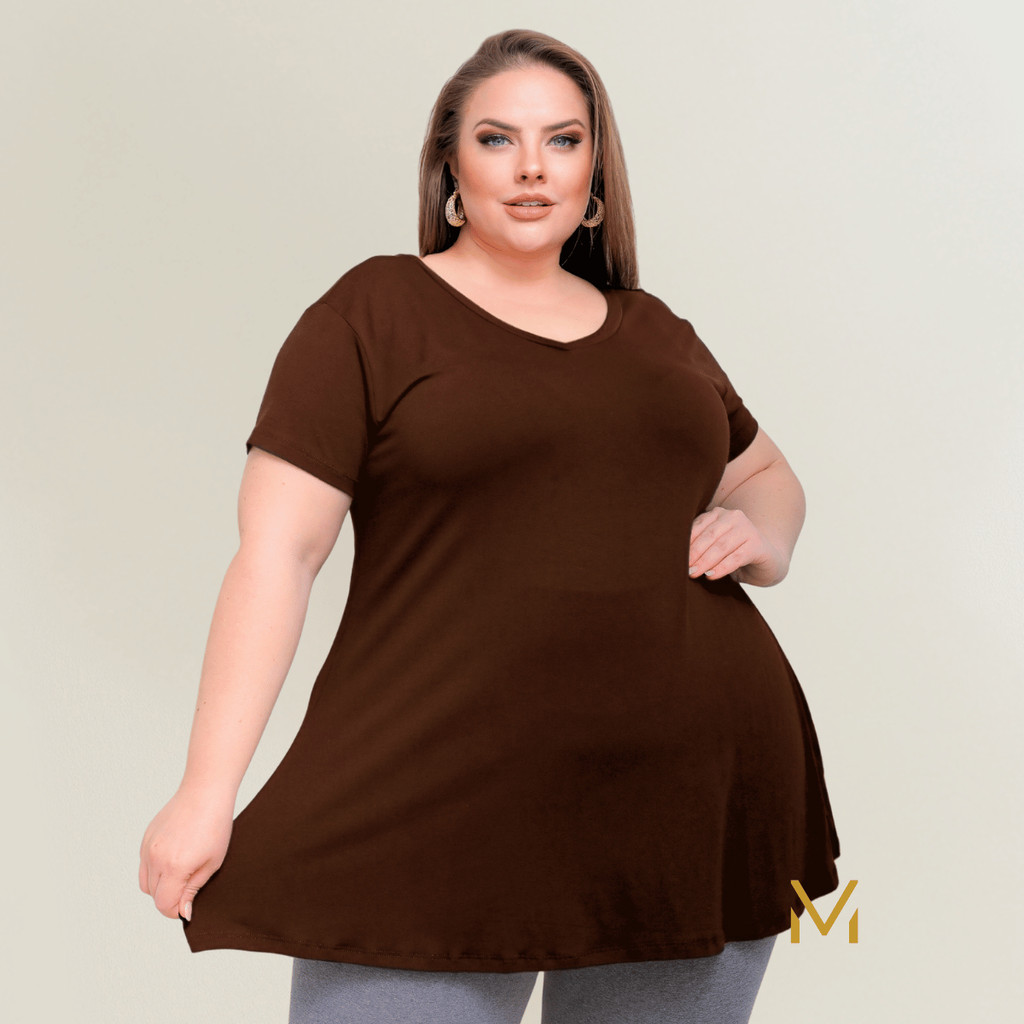Blusinha Bata Plus Size Feminina Soltinha Evasê Malha Viscolycra Até o G3
