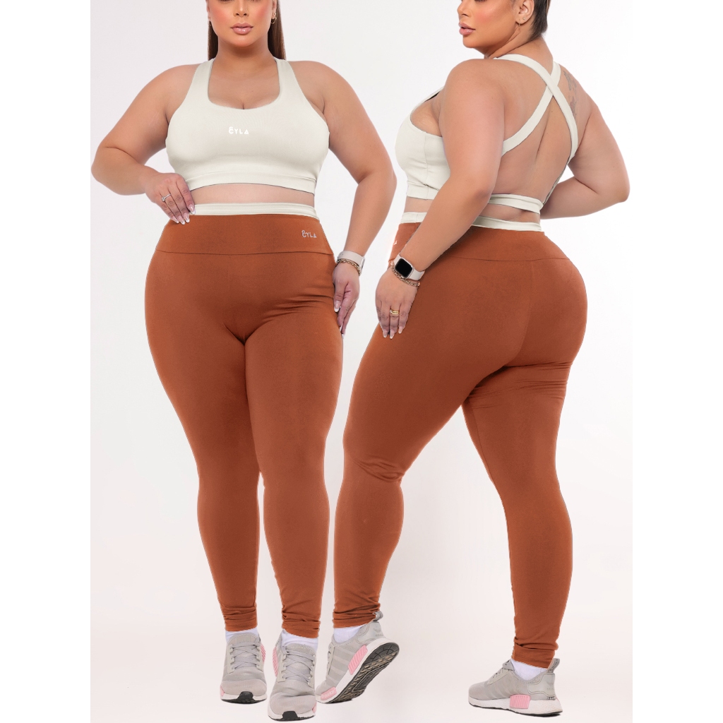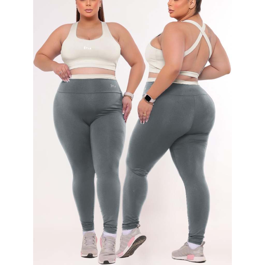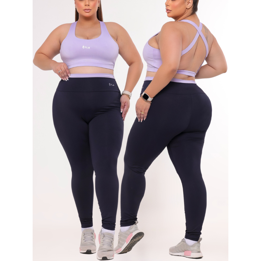 Conjunto Academia Fitness Top e Legging Plus Size Cintura Alta Suplex Premium Feminino GG ao EG