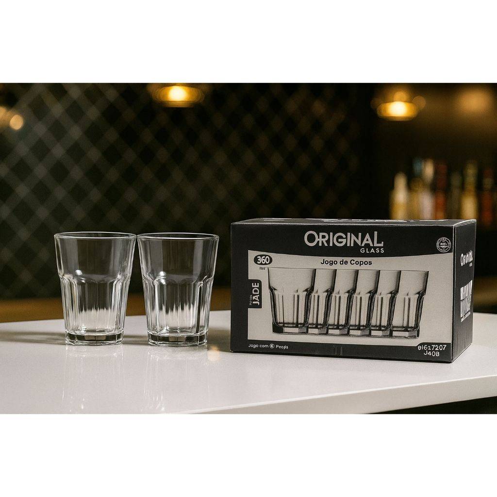 KIT 6 COPOS DE WHISKY GROSSO RESISTENTE TRANSPARENTE 360 ML ELEGANTE.
