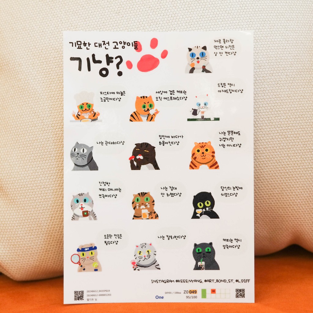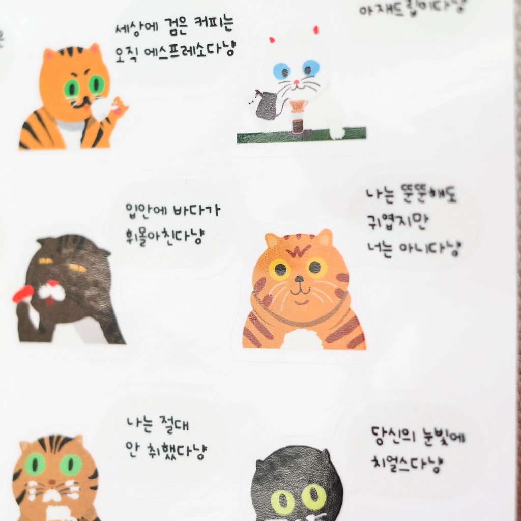 [Gatos Coreanos Mais Velhos , KeeeNyang ?] Conjunto De Adesivos Transparentes-Todos Os 13 Em Uma Folha (x5 Folhas)