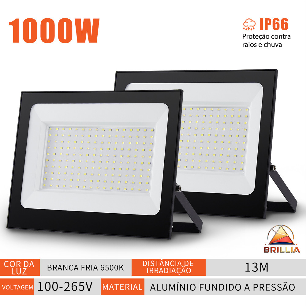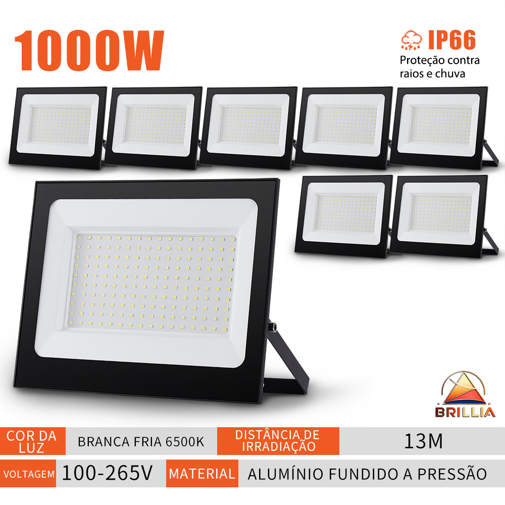 Kit 2-8 Refletor LED 1000W Holofote Bivolt à Prova d'Água Super Brilhante e Econômico Frio Externas