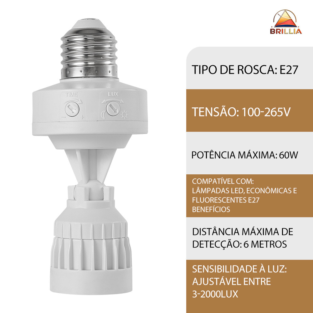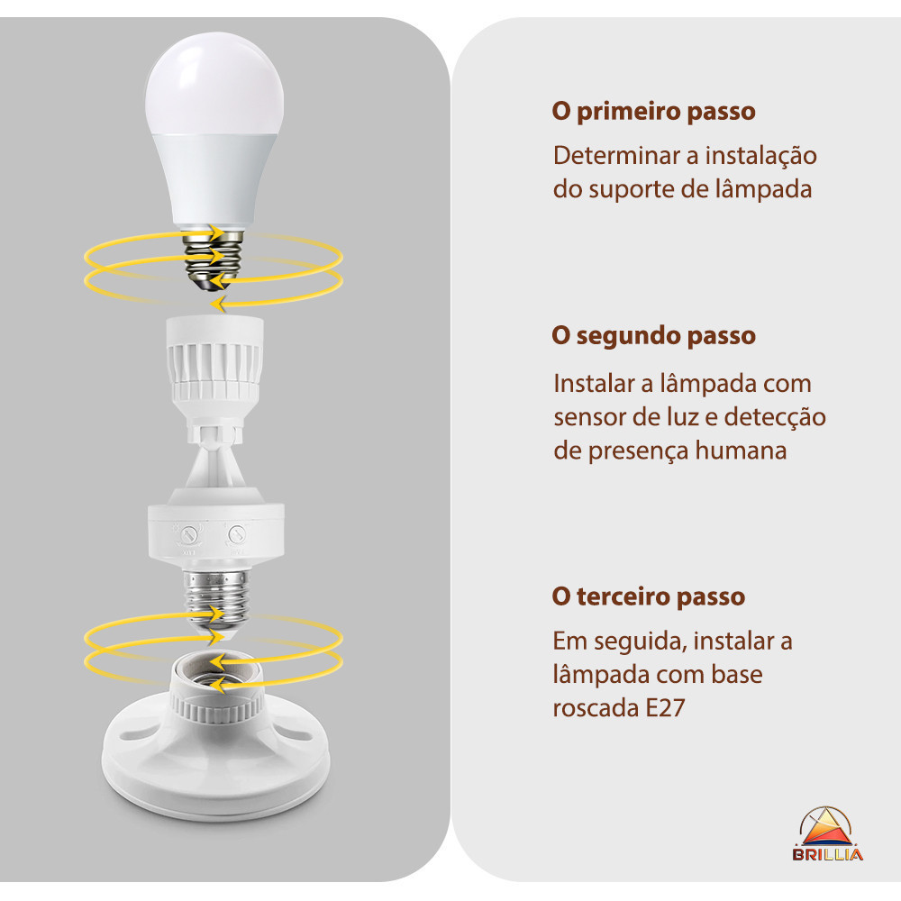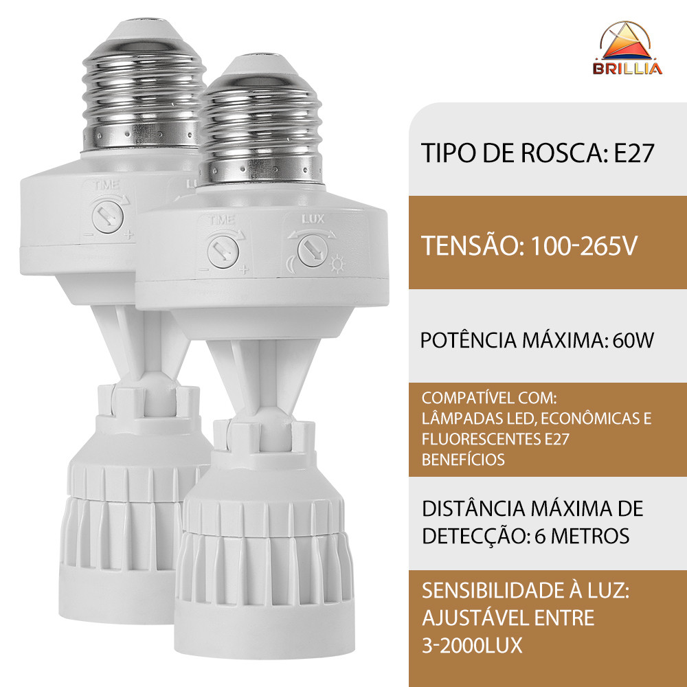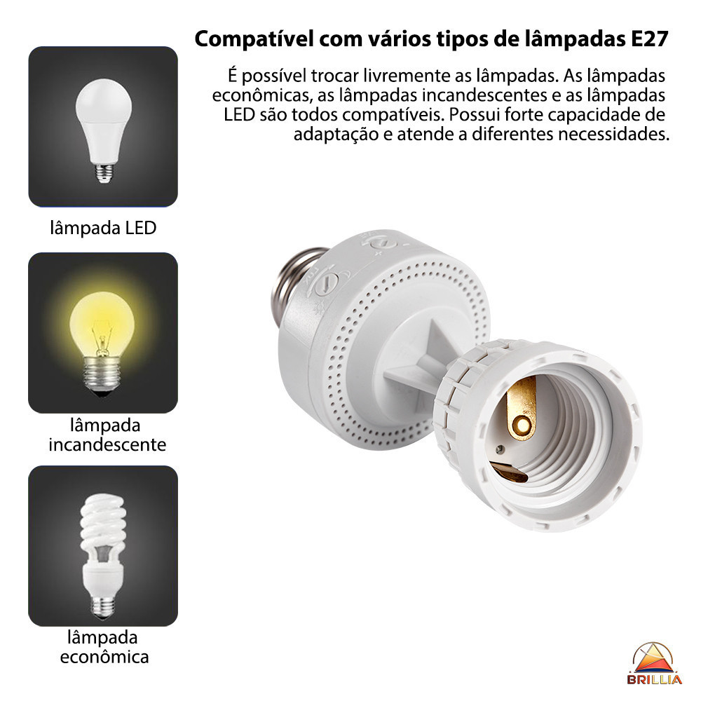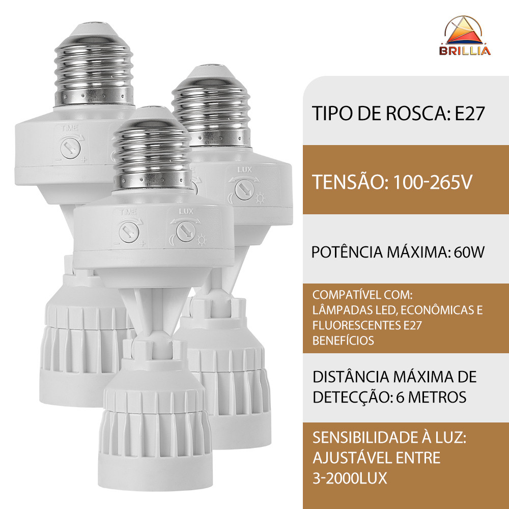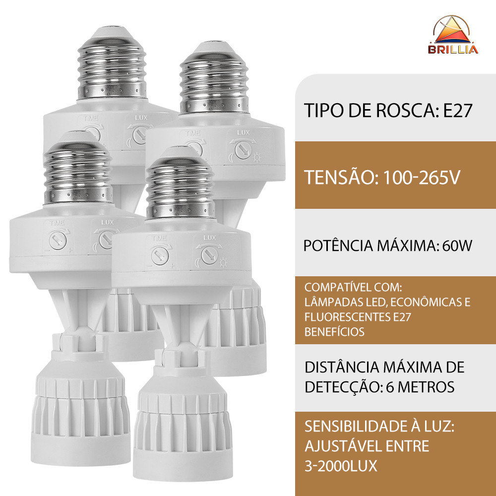 KIT 1~4 Sensor De Presença de Movimento Com Fotocélula Para Lâmpada Soquete E27 Temporizador Bivolt