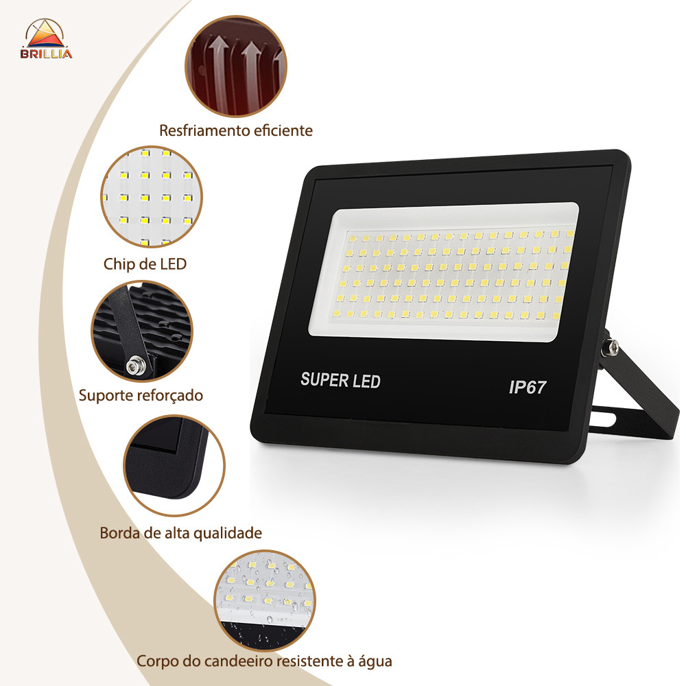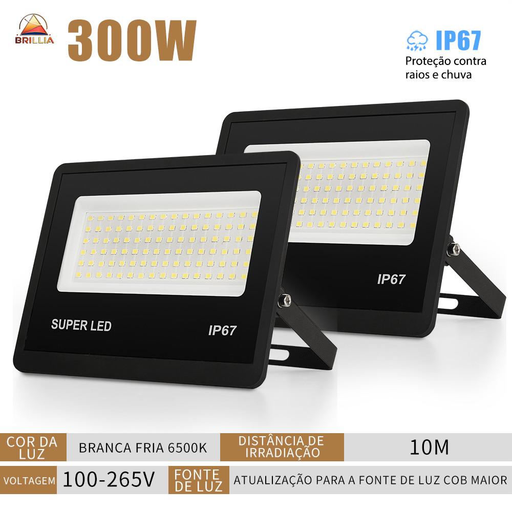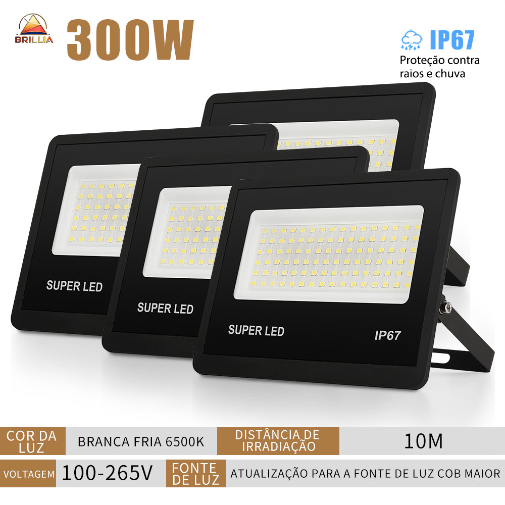 Kit 1~4 Refletor LED 300W Holofote IP67 Super Brilhante e Econômico à Prova d'Água Externas Bivolt