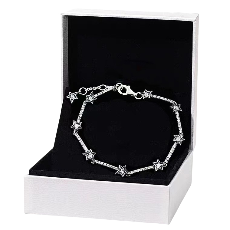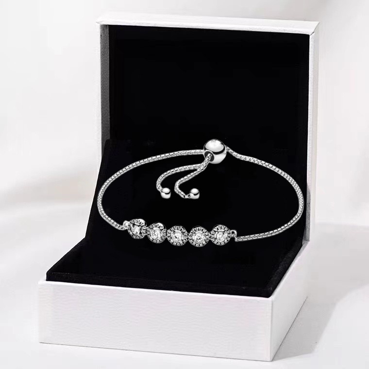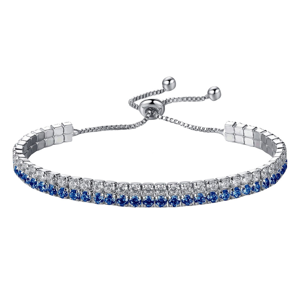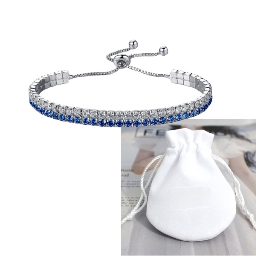 { Pulseira De Diamante Branco Azul Prata S925 } Joias De Design Ajustável Com Combinação De Zircônia De Duas Cores