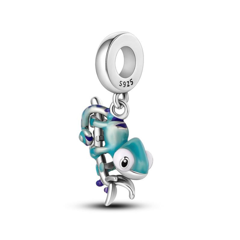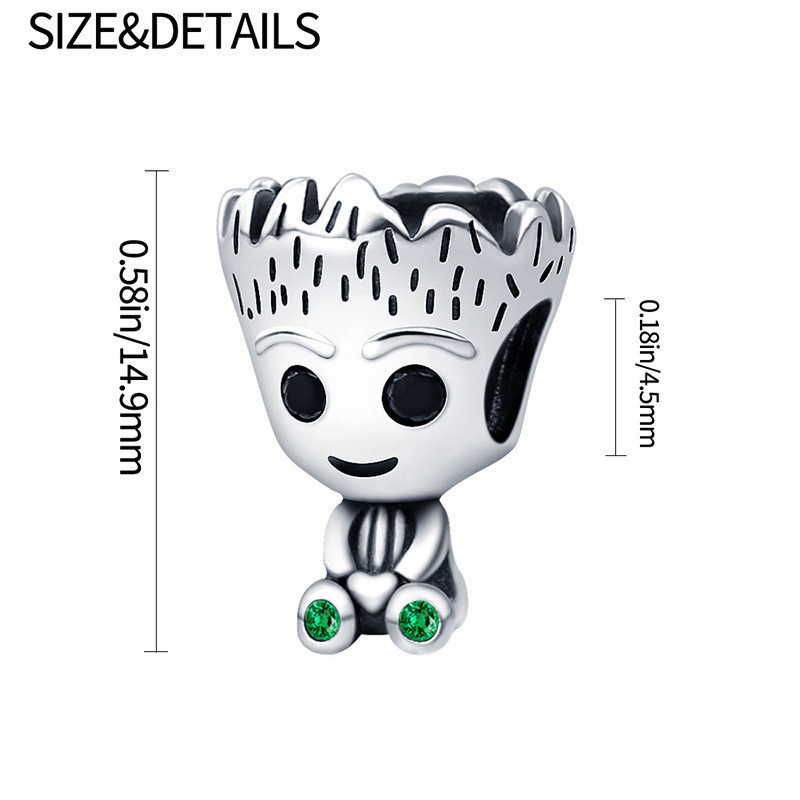 Berloque Separador De Vida Charme 925 Prata Pingente Pulseira Série Cristal Verde Bugging Acessórios DIY