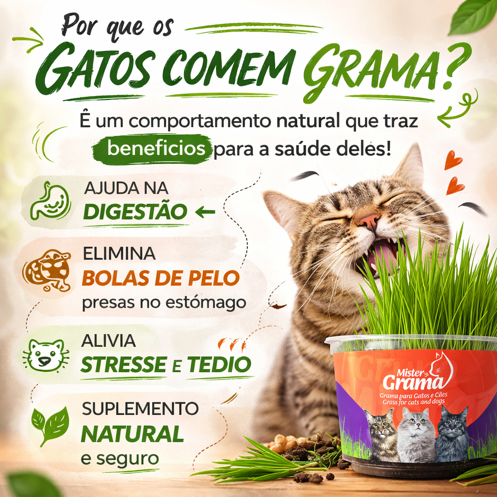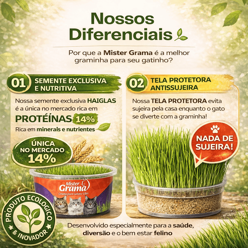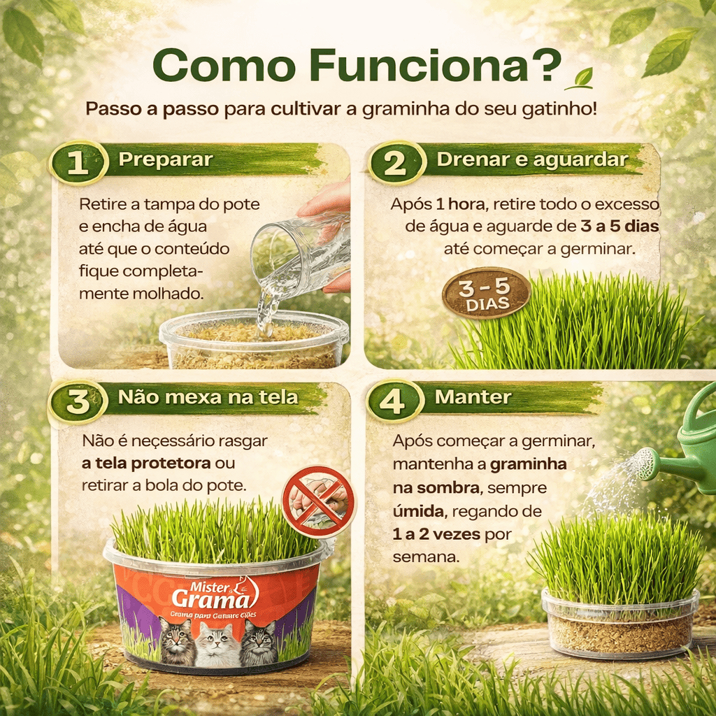 Grama Para Gato Mister C/ 3 Unidades – Auxilia na Digestão e Bola de Pelo / Fácil de Plantar