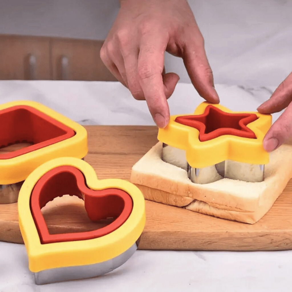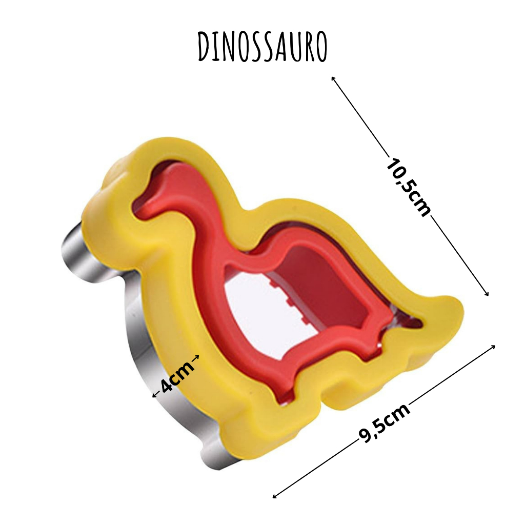 Cortador de Sanduíche Biscoito em Inox Desenhos Dinossauro Mickey Coração Estrela Frutas Pão