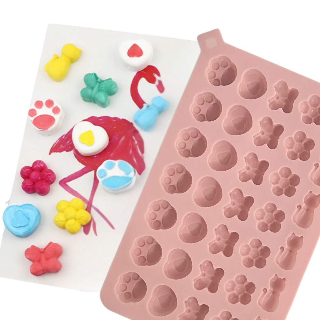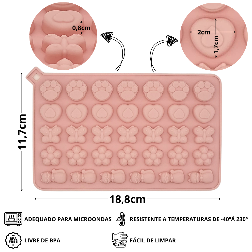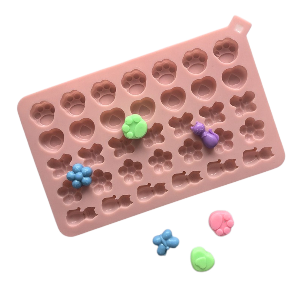 Molde de Silicone Gatinho e Borboleta 34 Cavidades Forma de Patinhas Goma Doce Chocolate