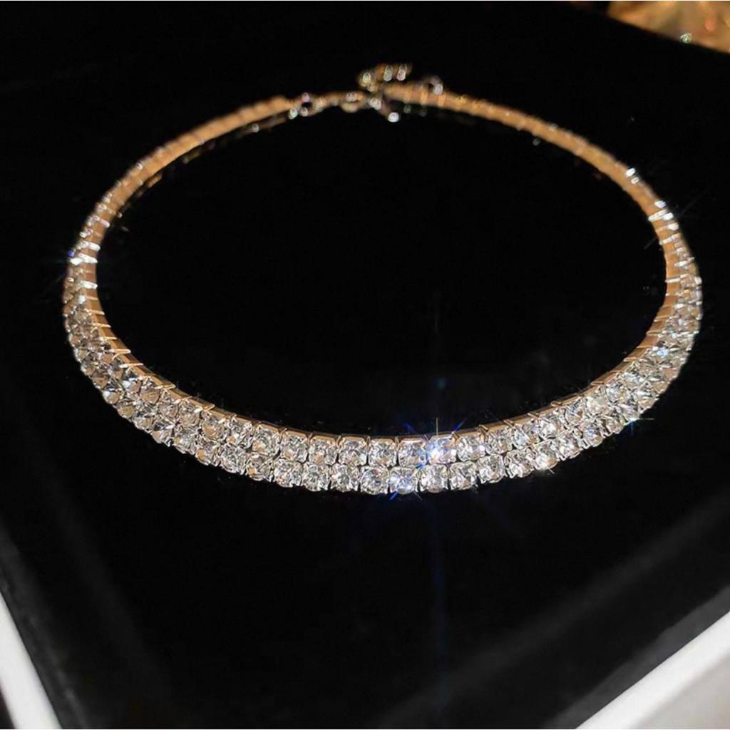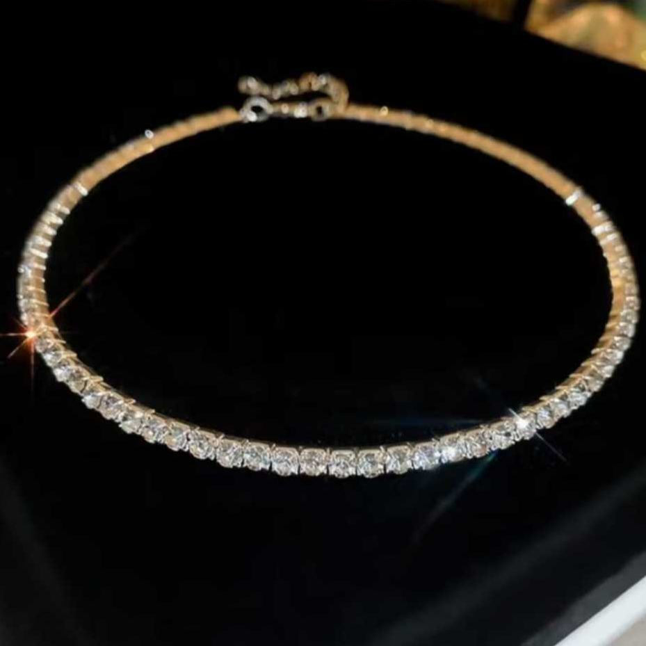 Colar Gargantilha com Strass Dourada/Prata – Feminina Luxo para Casamento e Festa