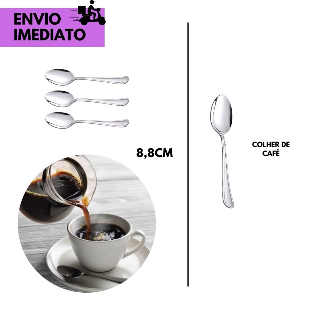 Kits 24 ou 12 unidades de Colher de Café Inox Pequena Elegantes, Resistentes e Fáceis de Limpar