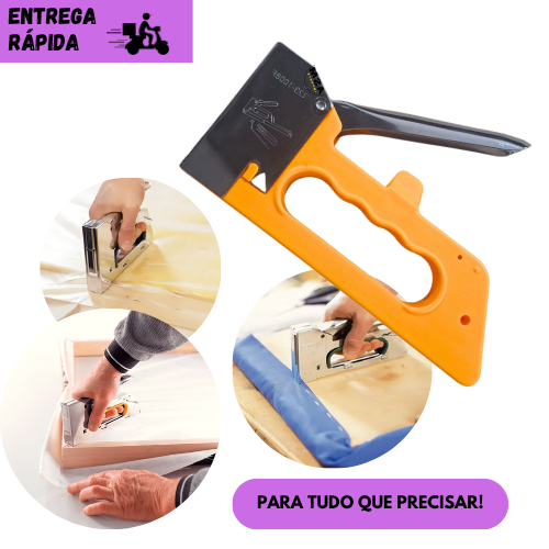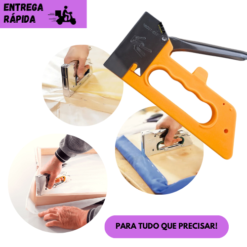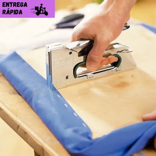 Kit Grampeador Profissional Tapeceiro + 2000 Grampos Estofado Madeira Couro Tecido ou Sem Grampo