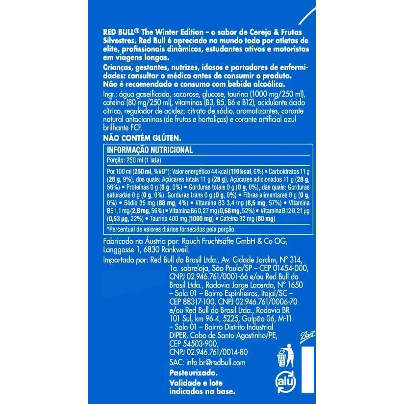 Pack de 12 latas Red Bull Energético, Cereja e Frutas Silvestres, 250ml - Kit 3 packs