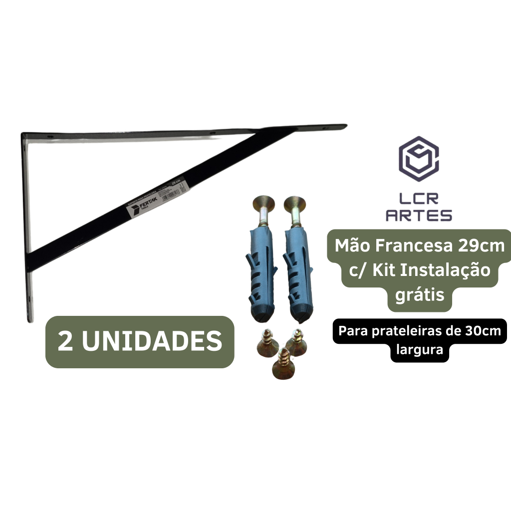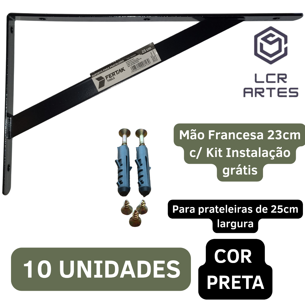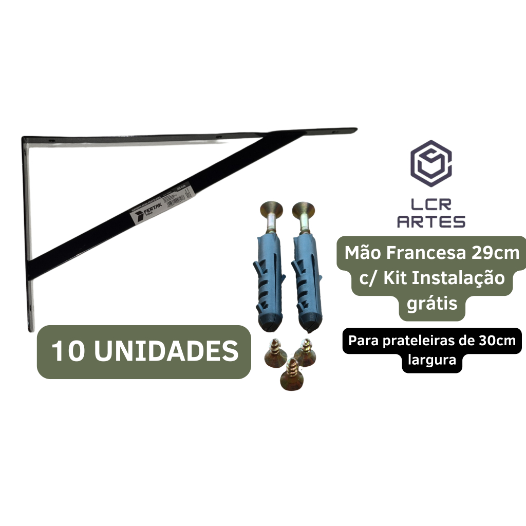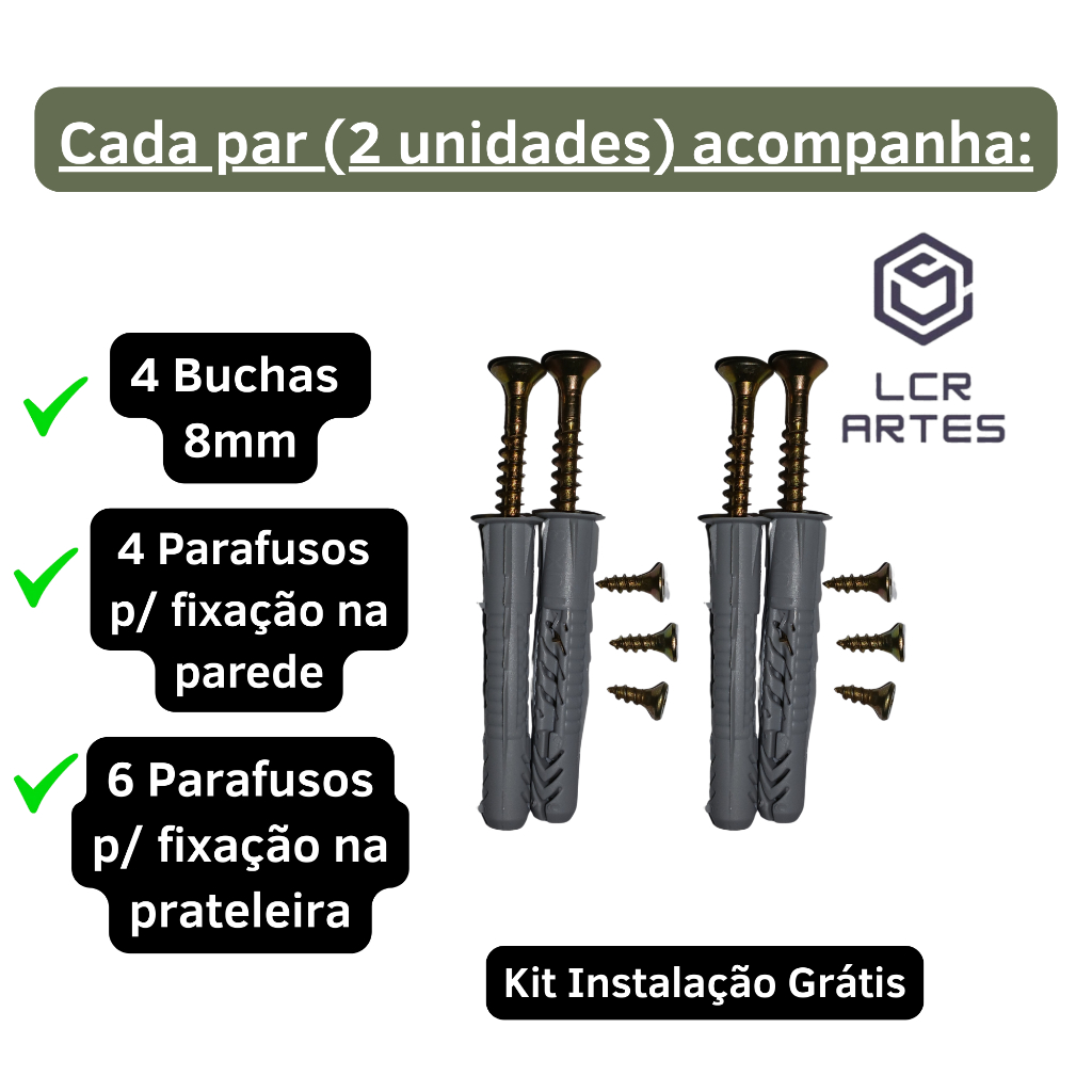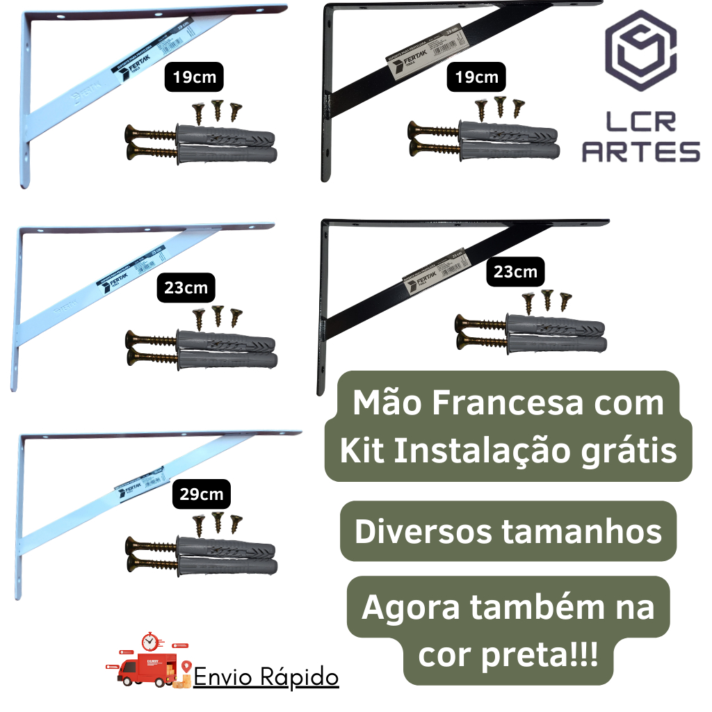 Kit Mão Francesa Branca / Preta + Kit Instalação com Parafuso e Bucha - 2 | 4 | 6 | 8 | 10 | 12 Unidades
