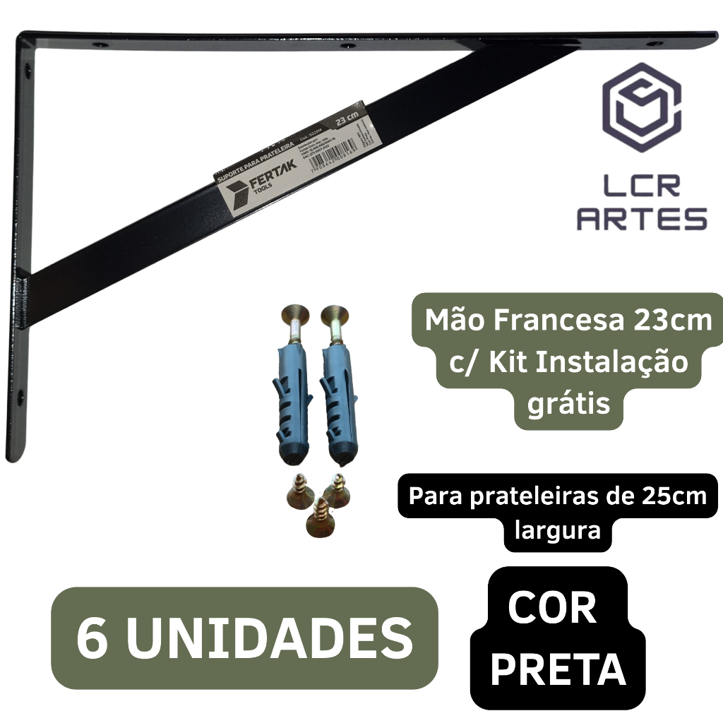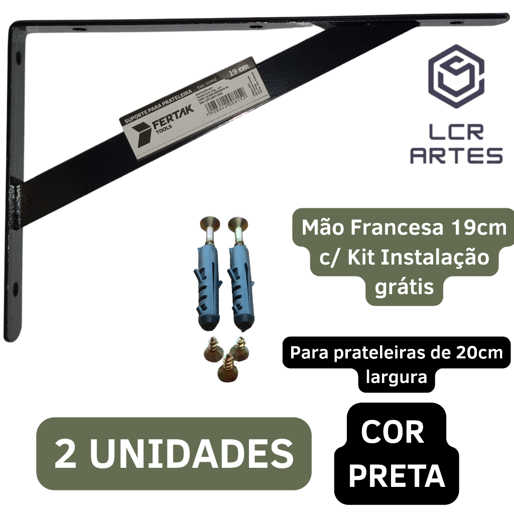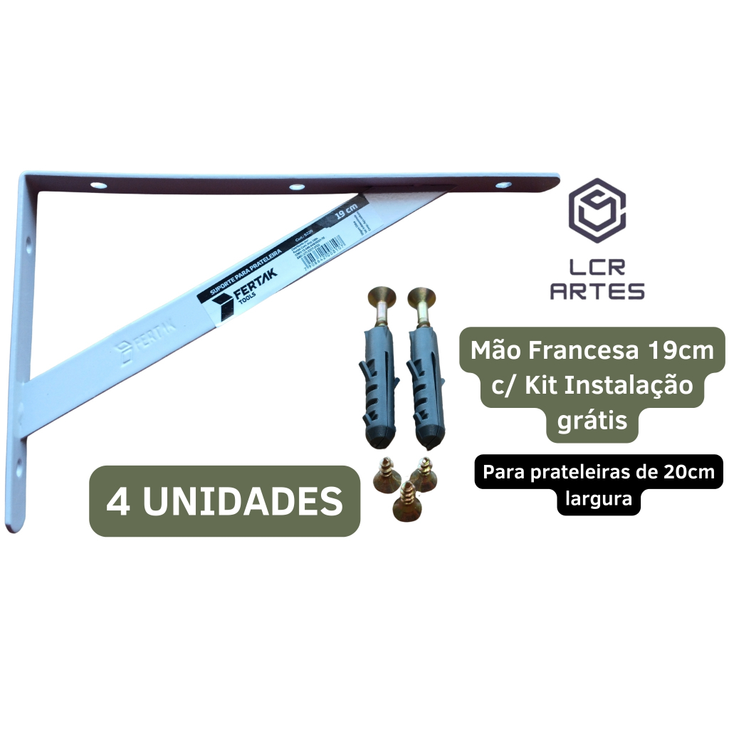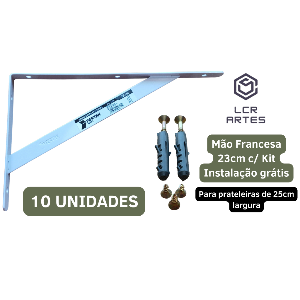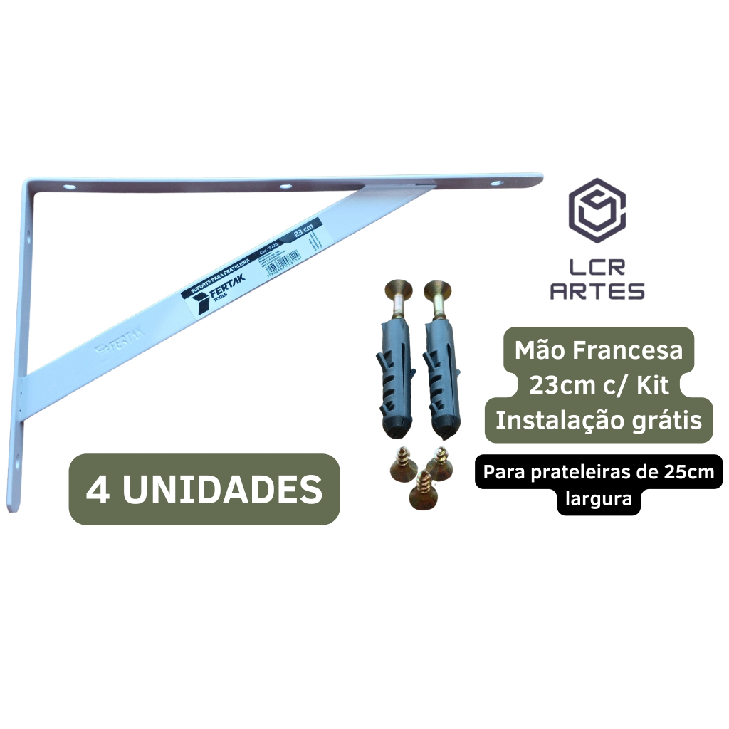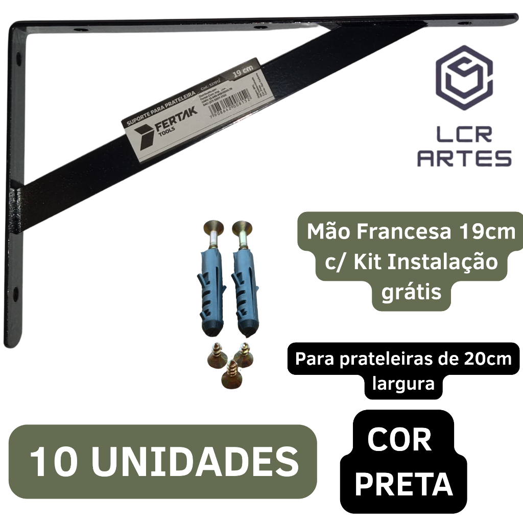 Kit Mão Francesa Branca / Preta + Kit Instalação com Parafuso e Bucha - 2 | 4 | 6 | 8 | 10 | 12 Unidades
