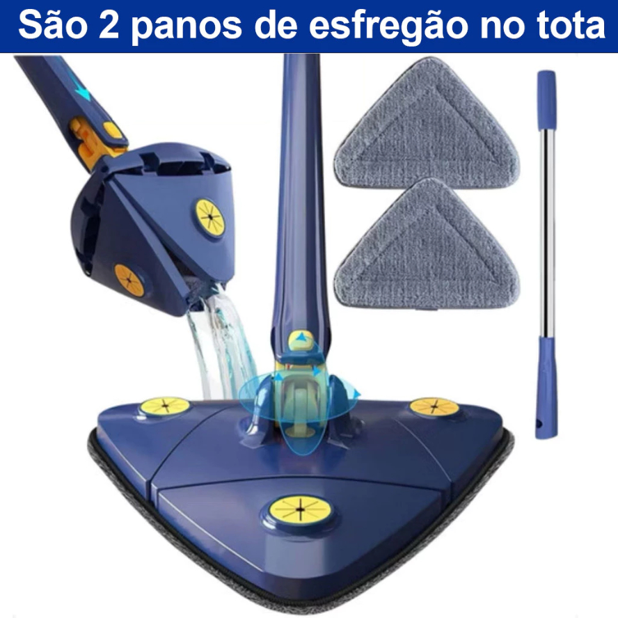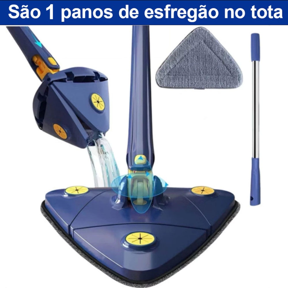 Esfregão Triangular Mop 2 Refis 130 comprimento Rodo Limpador Giratório Mop 360°