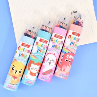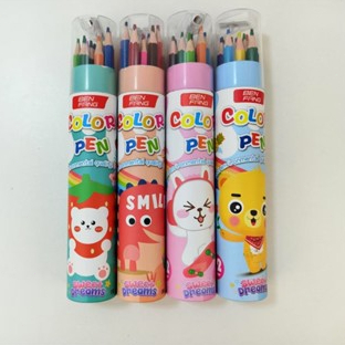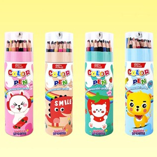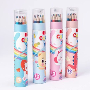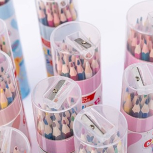 Kit Completo 12 Lápis de Cor + Apontador em Balde / Presente Escolar Prático