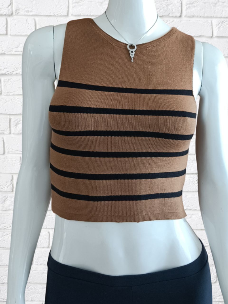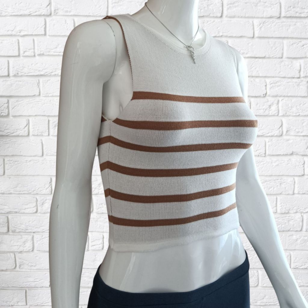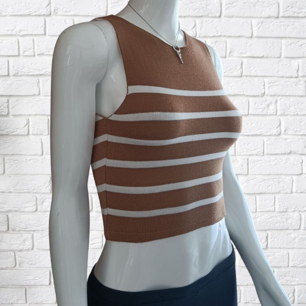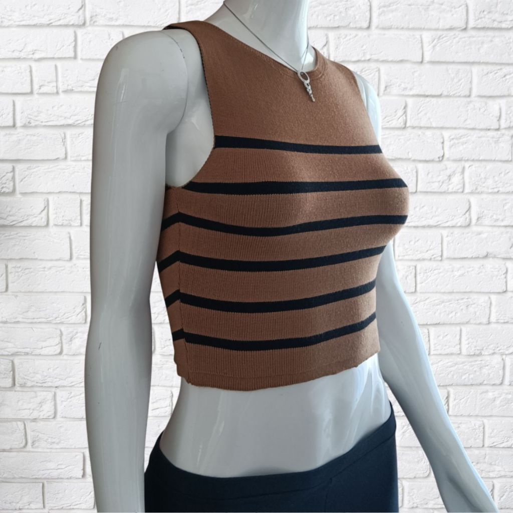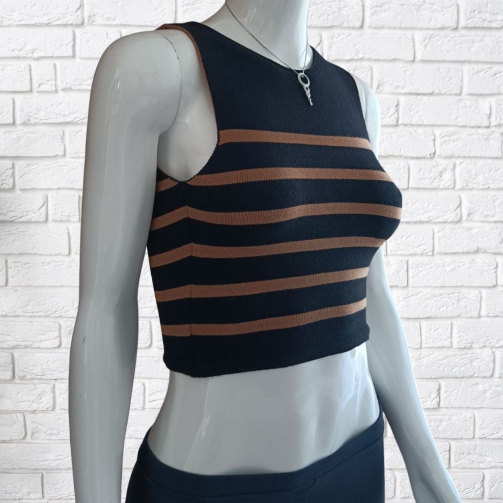 Top Cropeed Modal Jacquard Listrado Moda Feminina