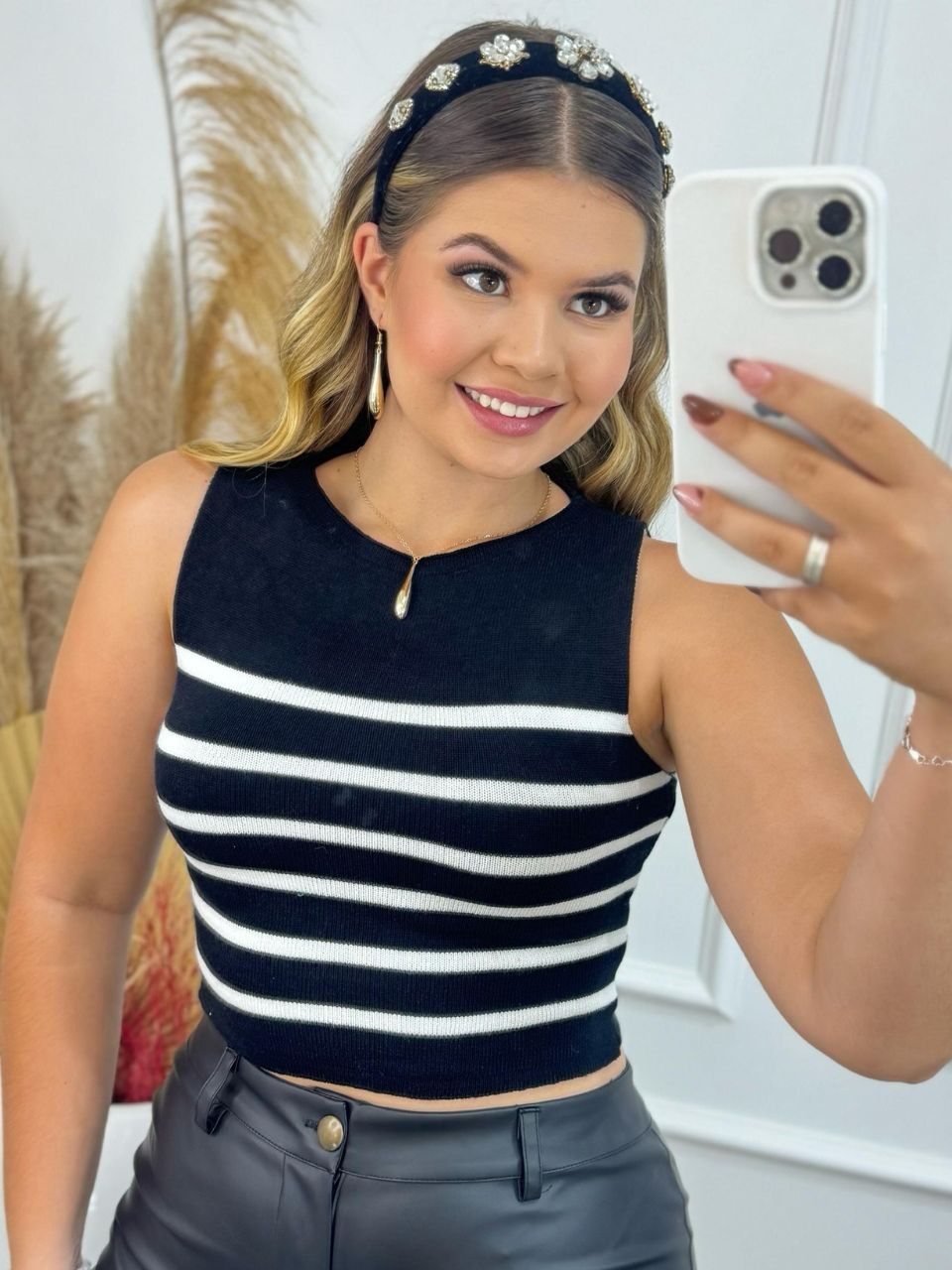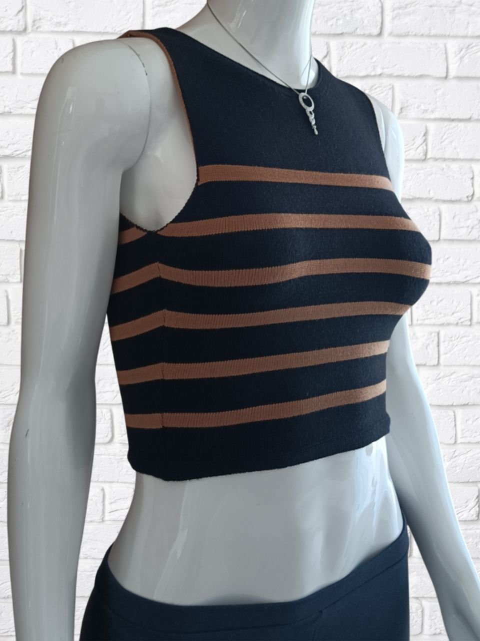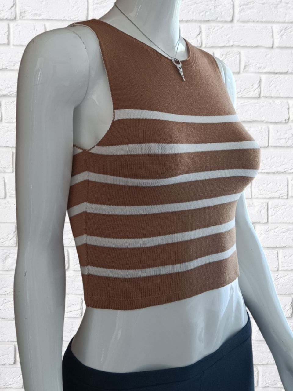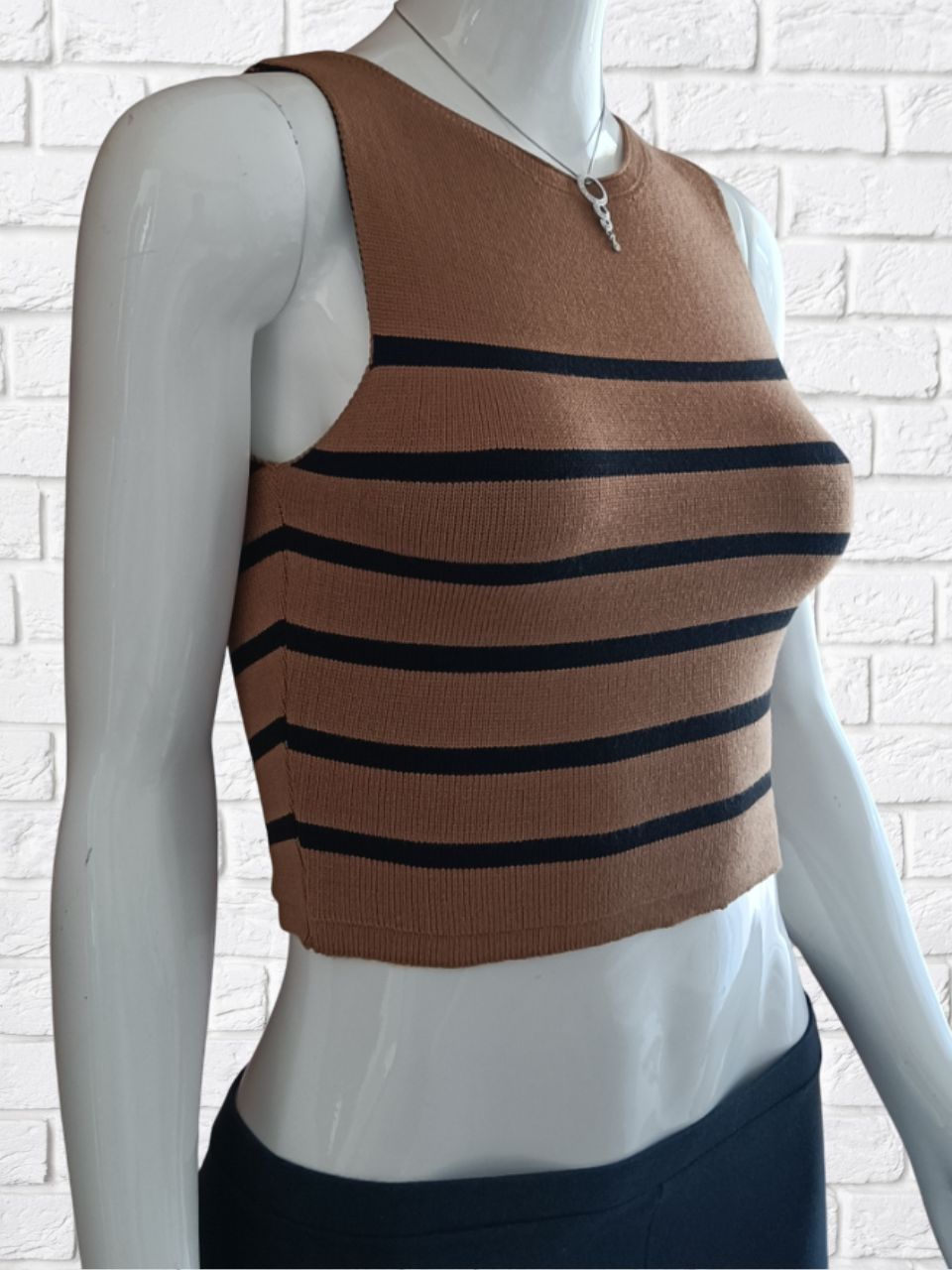 Top Cropeed Modal Jacquard Listrado Moda Feminina