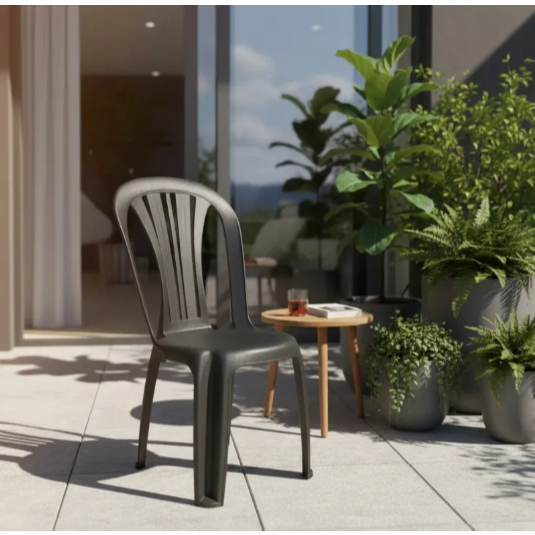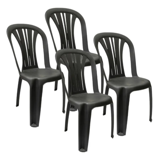 Kit 4 Cadeiras Plástica Lisboa Preta Com Encosto