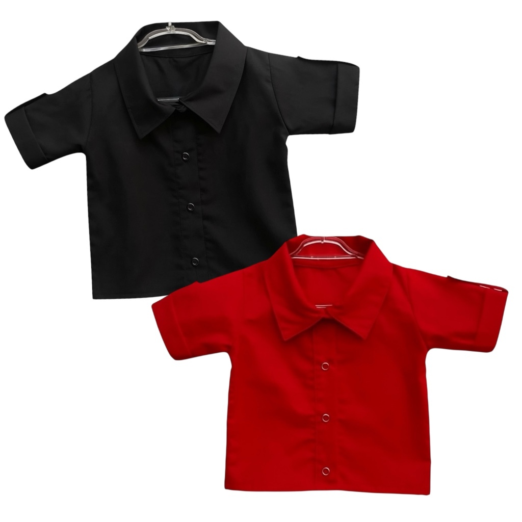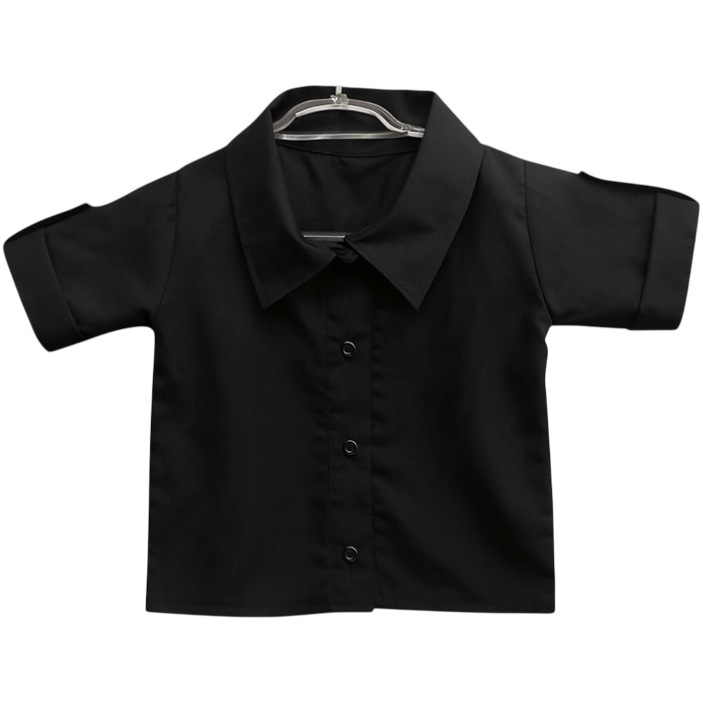 Camisa Social Infantil Bebê Menino Manga Curta Preta 100% Algodão - Tam. P/M/G | Diversas Cores