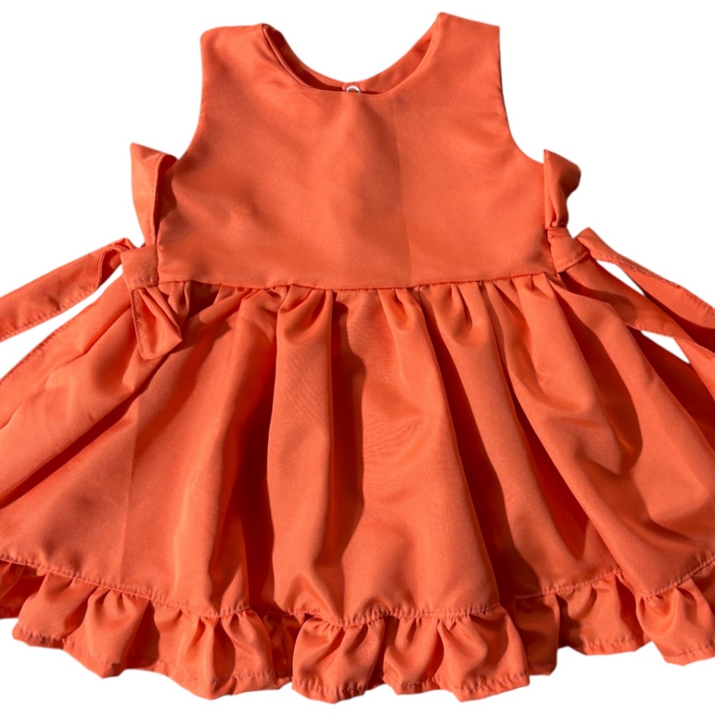 Vestido Infantil Bebê Menina Laranja 100% Algodão Laura - Tam. P ao 3 anos | Diversas Cores