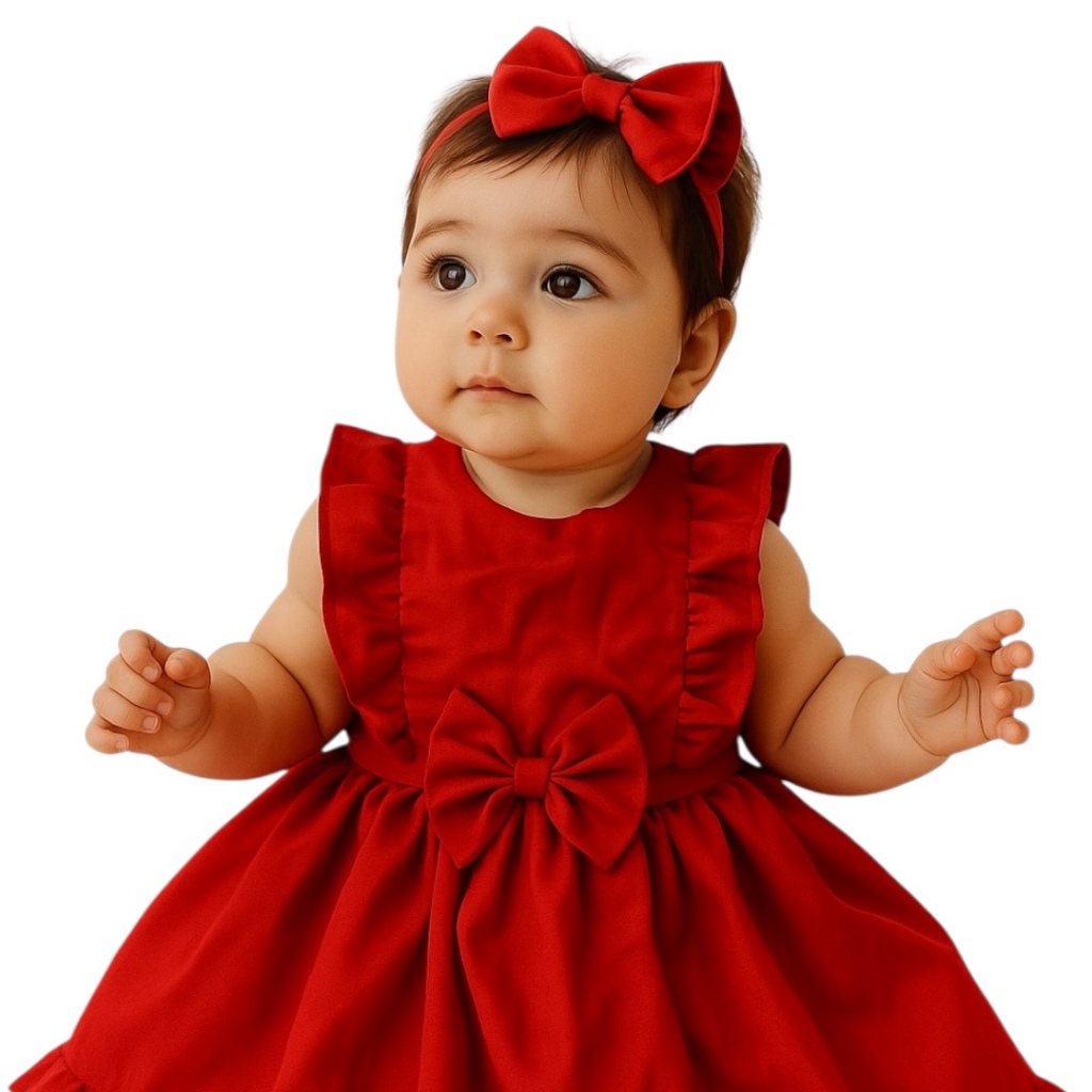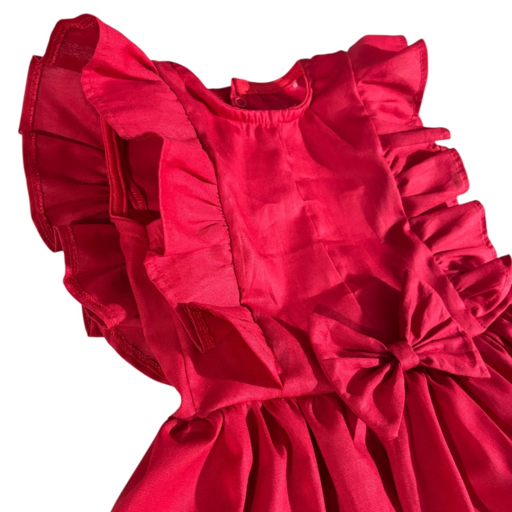 Vestido Infantil Bebê Menina Vermelho Luxo 100% Algodão Antonella - Tam. P ao 3 anos
