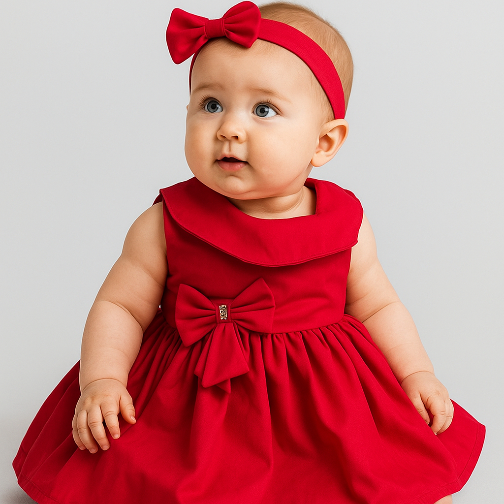 Vestido Infantil Bebê Menina 100% Algodão Vermelho Luxo Maya - Tam. P ao 3 anos | Diversas Cores