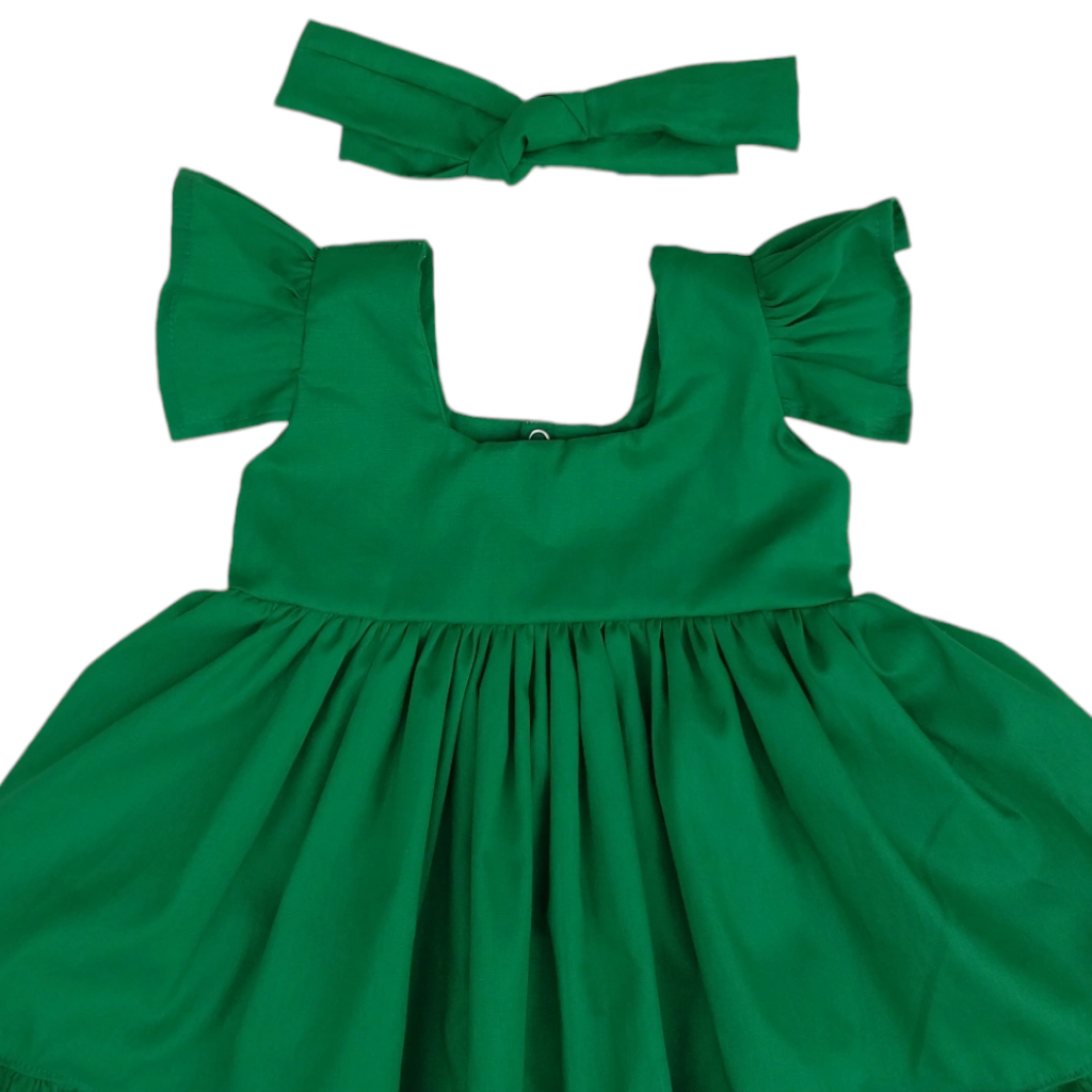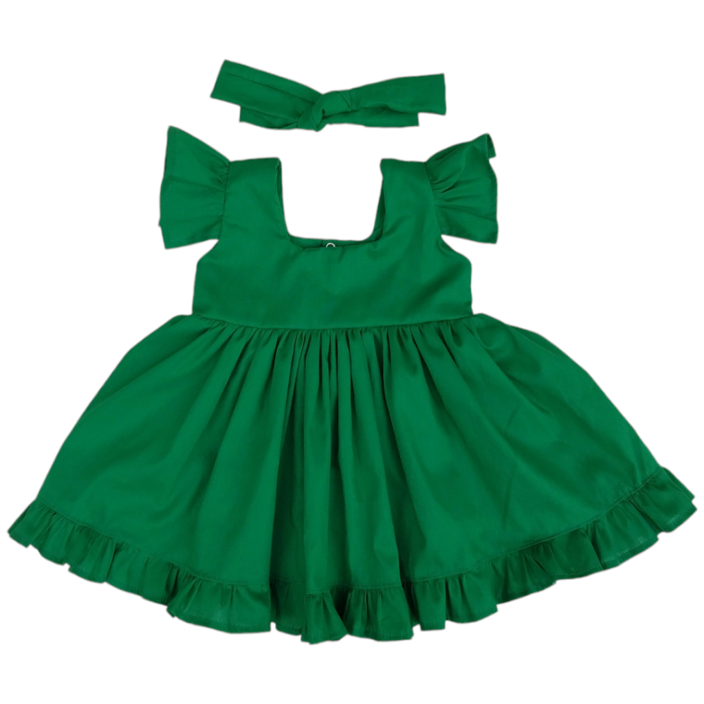 Vestido Infantil Com Tiara Bebê Menina Verde 100% Algodão Brenda - Tam. P ao 3 anos | Diversas Cores