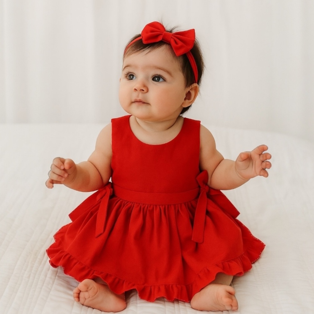 Vestido Infantil Bebê Menina Vermelho Natal Ano Novo Laura - Tam. P ao 3 anos | Diversas Cores