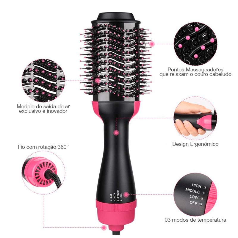 Escova Rotativa 110/220V Secadora Alisador Elétrica Quente Cabelo Com 3 Em1 Hair Styler