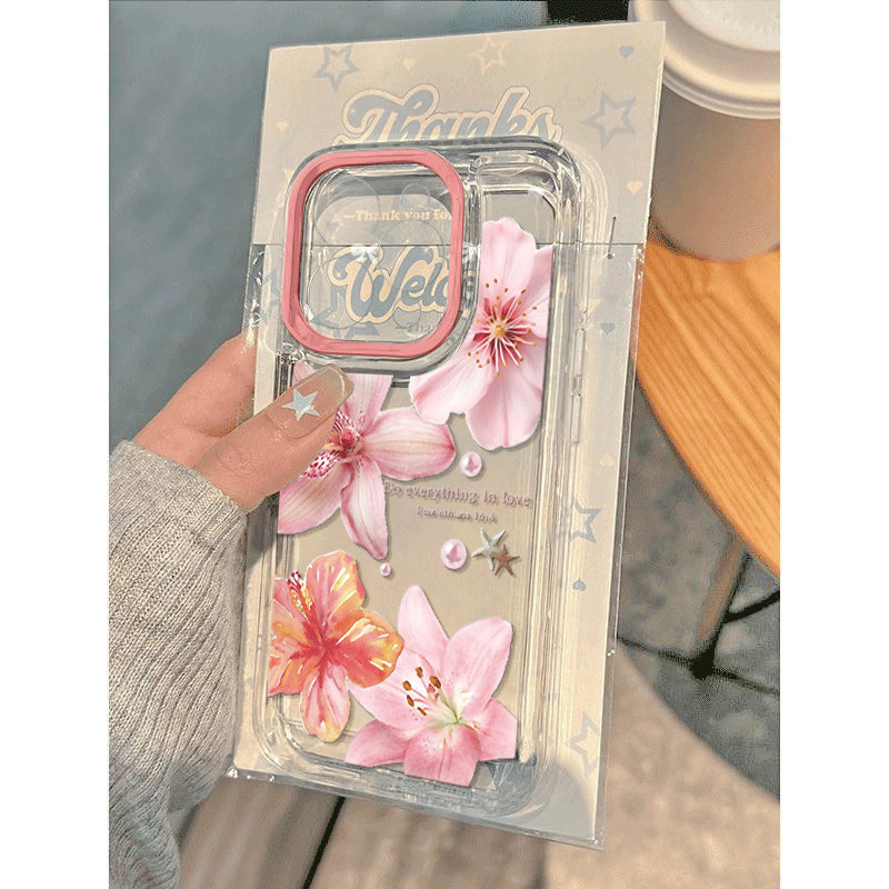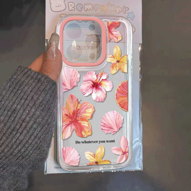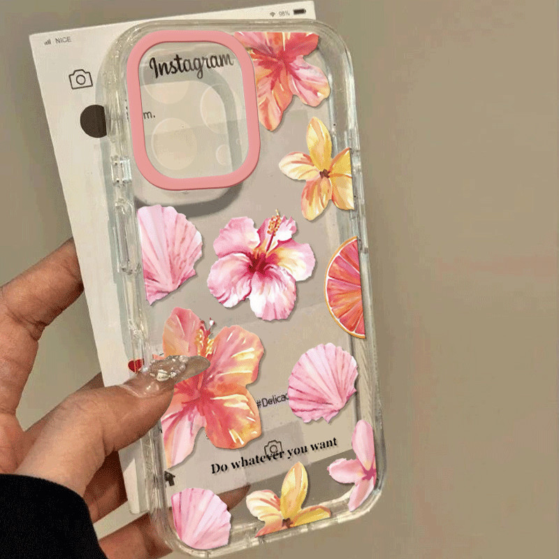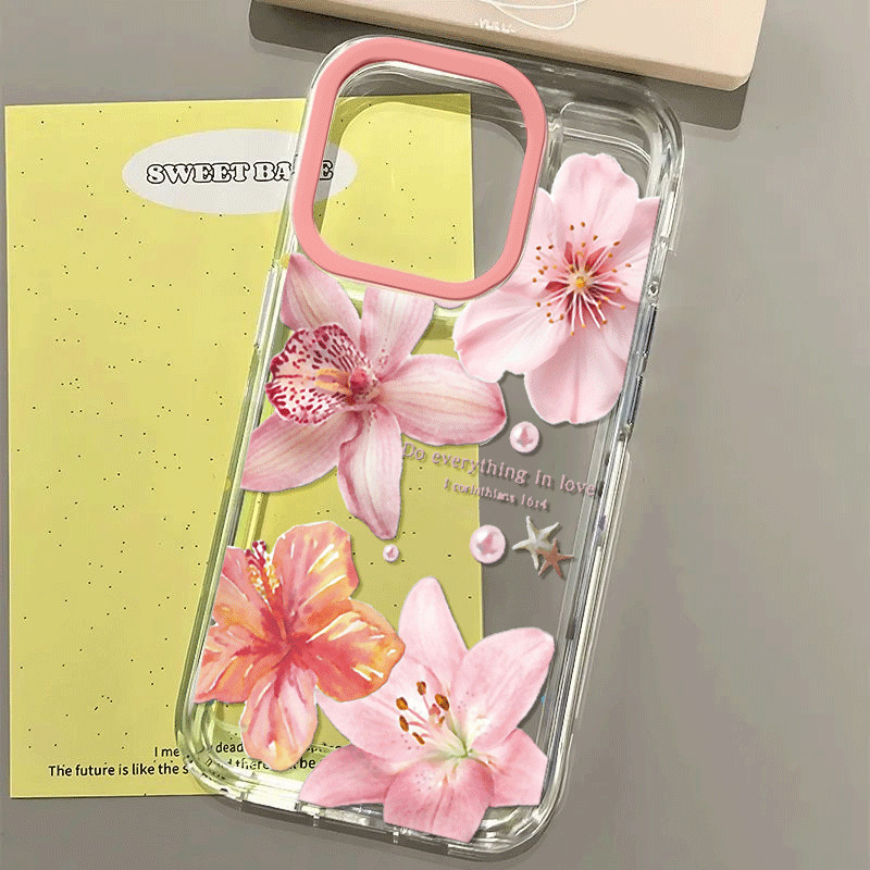 Capinha Capa Material transparente TPU Padrão floral rosa IPhone XR 11 12 13 14 15 16 Pro MAX 14 15 16 Plus