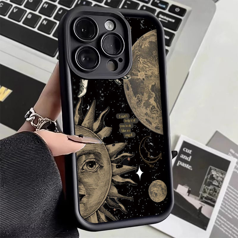 Softcase silicone Anti-impacto Místico Sol Lua Noite Celestial Para Samsung S25 EDGE PLUS S20 S23 FE S24 ULTRA A07 A17 A