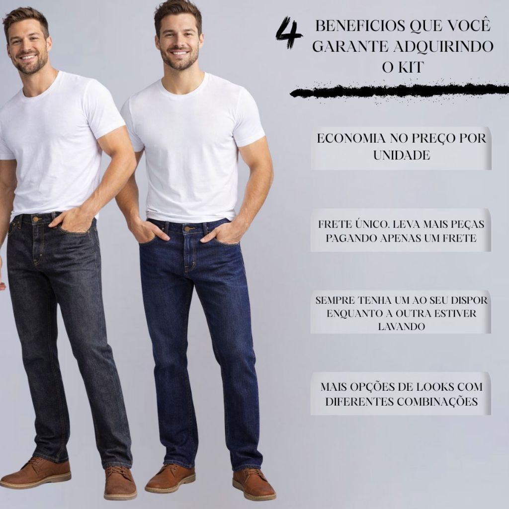 Kit 2 Calça Jeans Masculina Tradicional Corte Reto Plus Size Resistente Tecido Premium