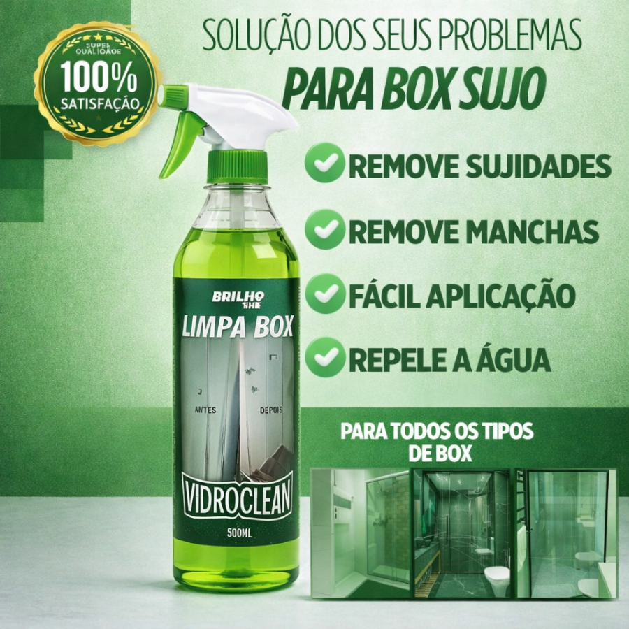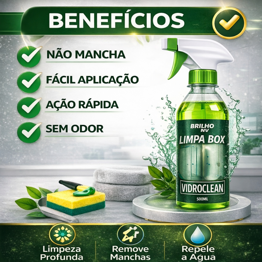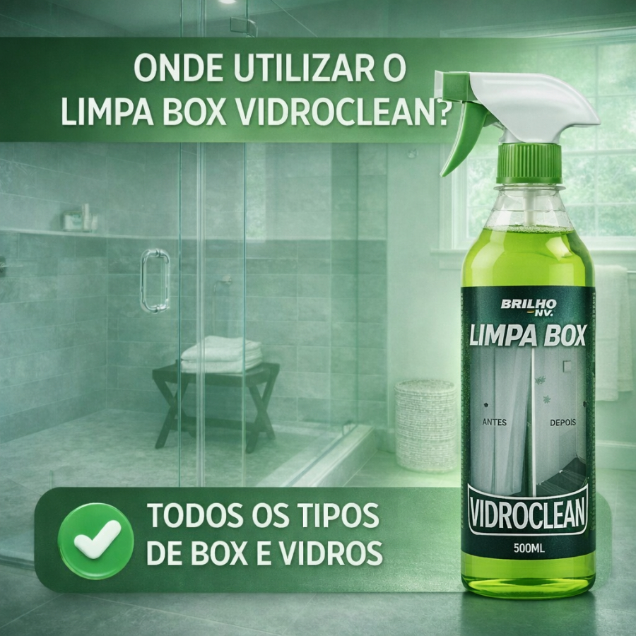Limpa Vidro Box Blindex e Remove Chuva Ácida VidroClean 500ml - Remove Gordura, Mancha e Calcário