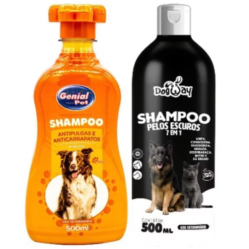 kit Shampoo Anti Pulgas + shampoo p/ pelos escuros 500ml