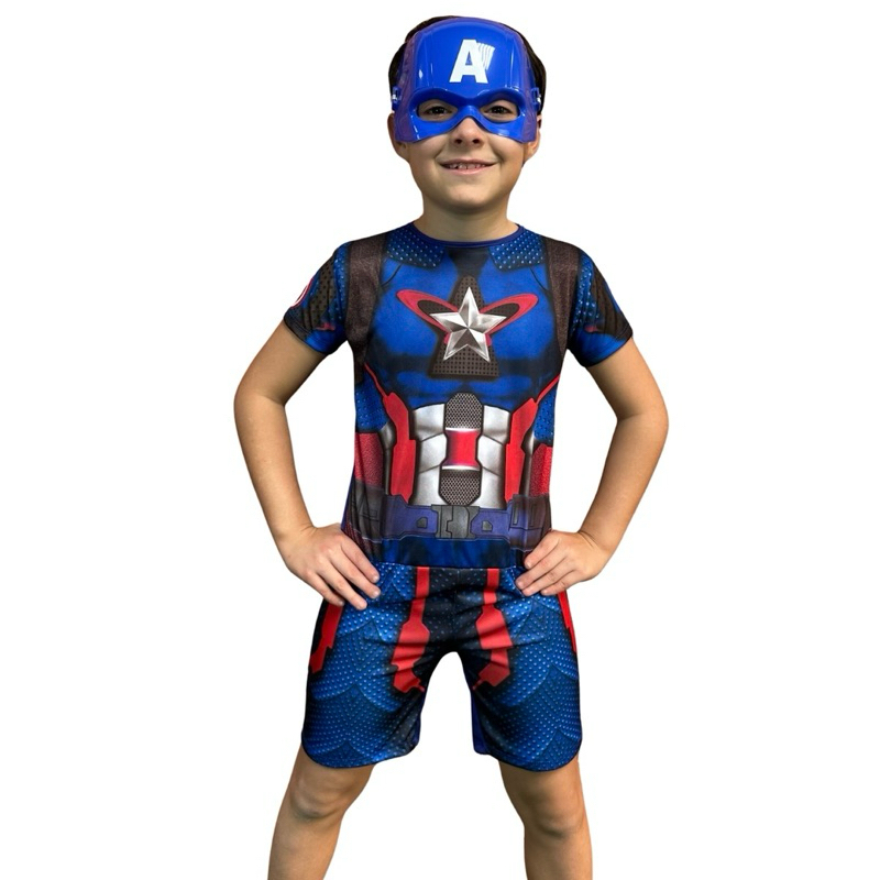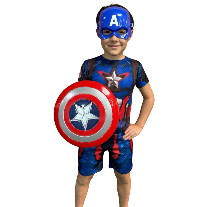 Fantasia Infantil Do Capitão América Com Máscara E Escudo