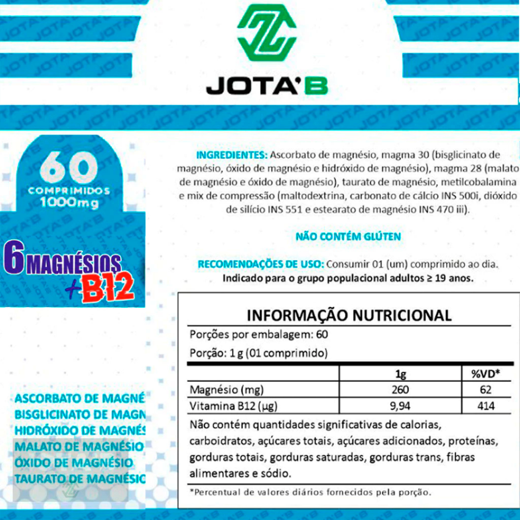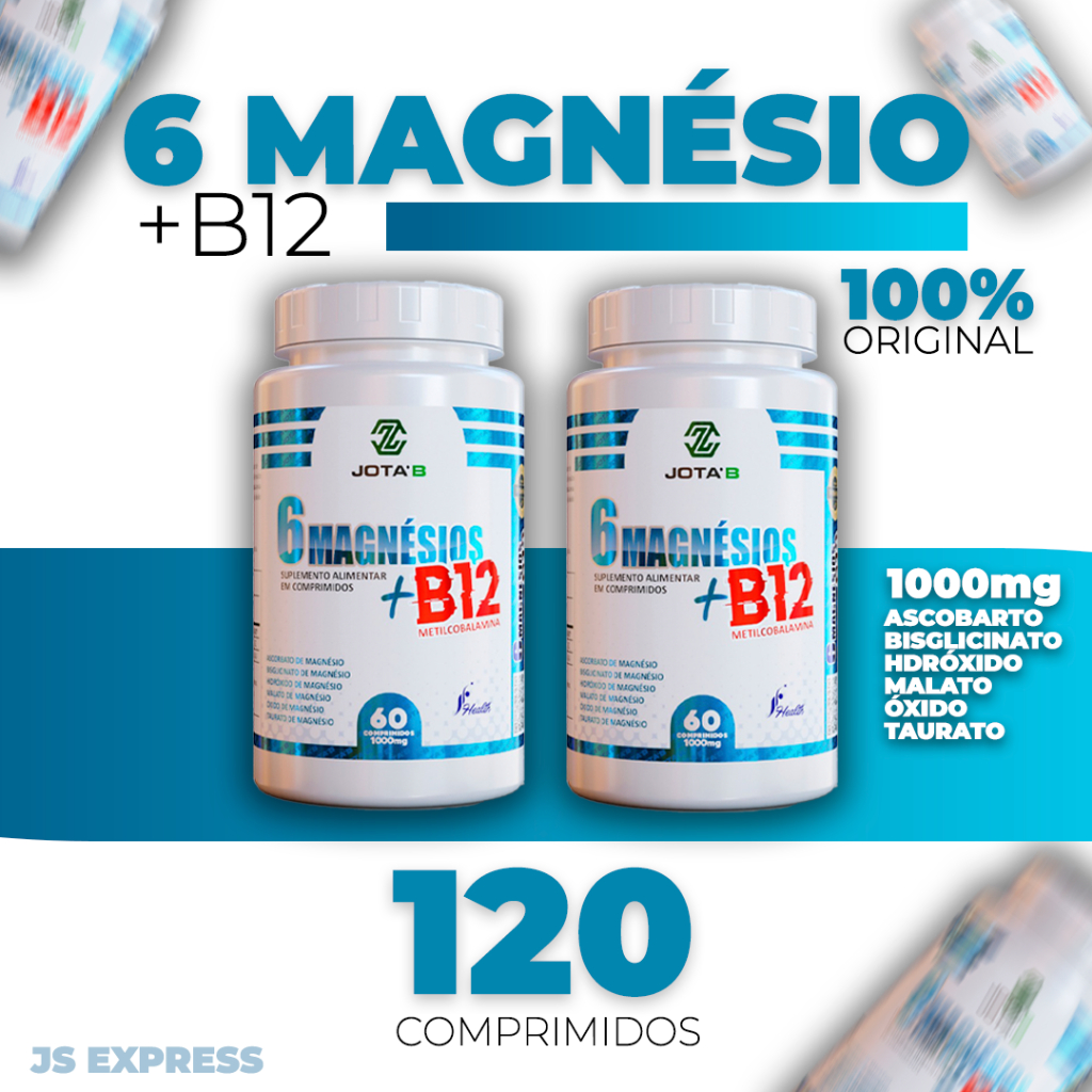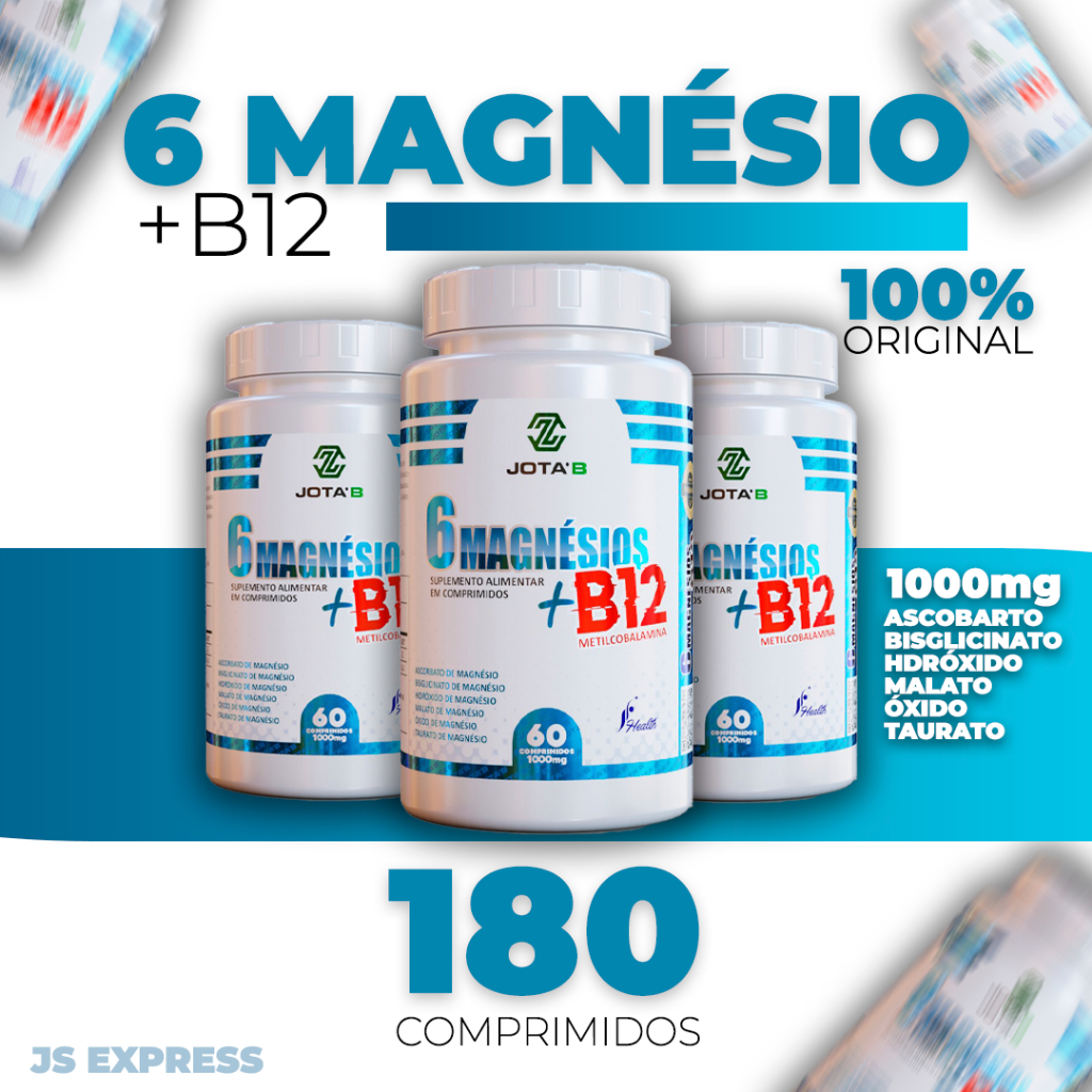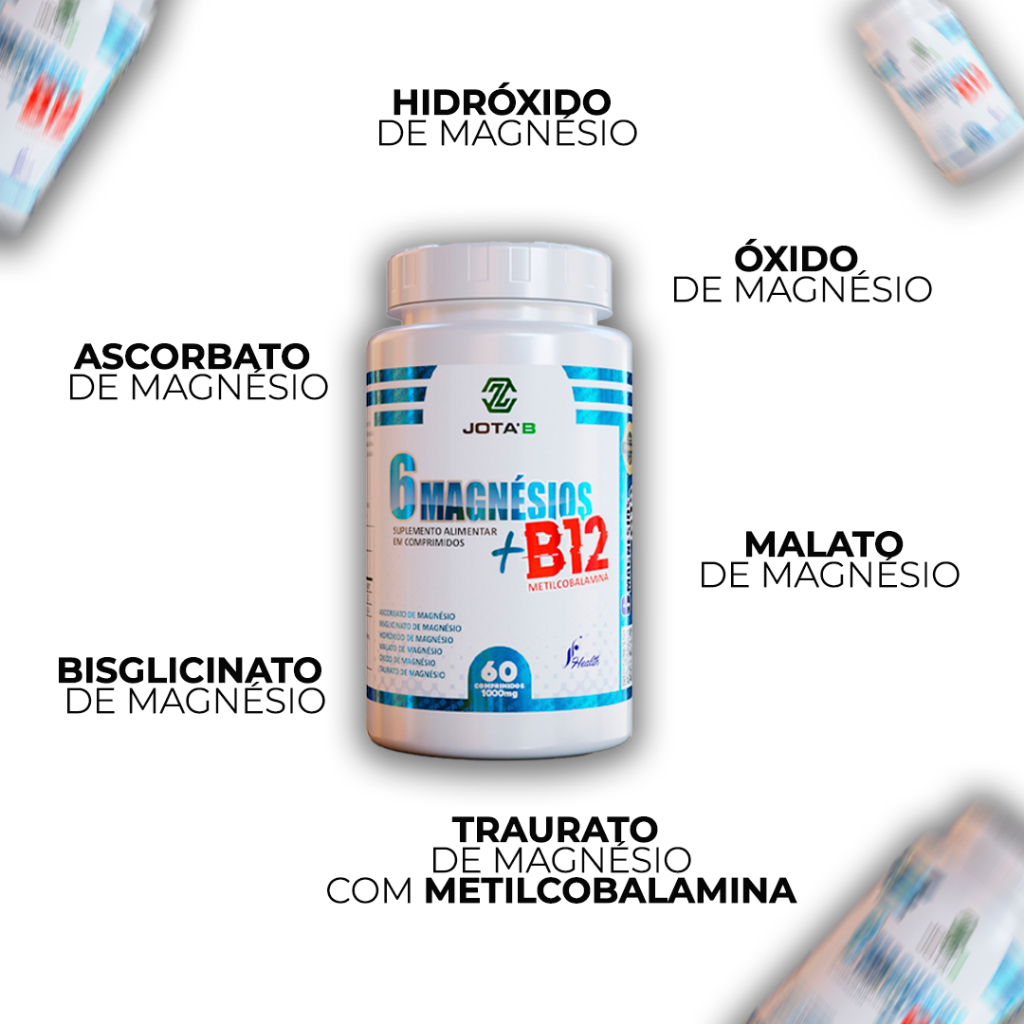 Mix poderoso de Magnésio 6 TIPOS DE MAGNÉSIO + B12 Metilcobalamina | 60 Comprimidos de 500mg