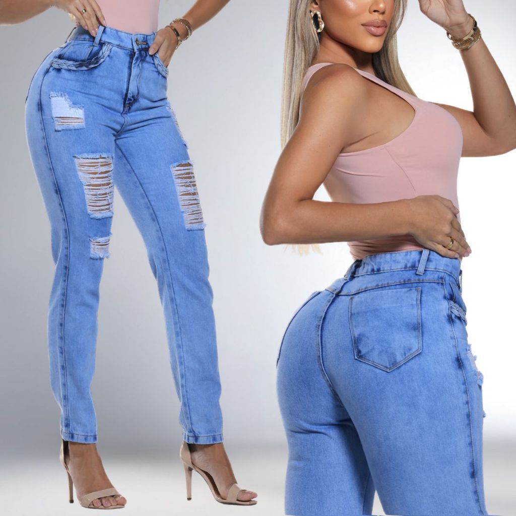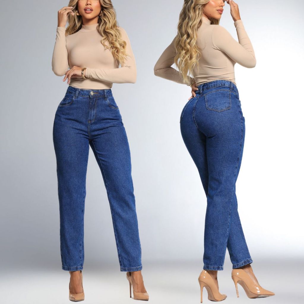 Calça Jeans Feminina Mom Clara Rasgada Com Pinça Detalhe Empina Bumbum Cintura Alta 100% Algodão