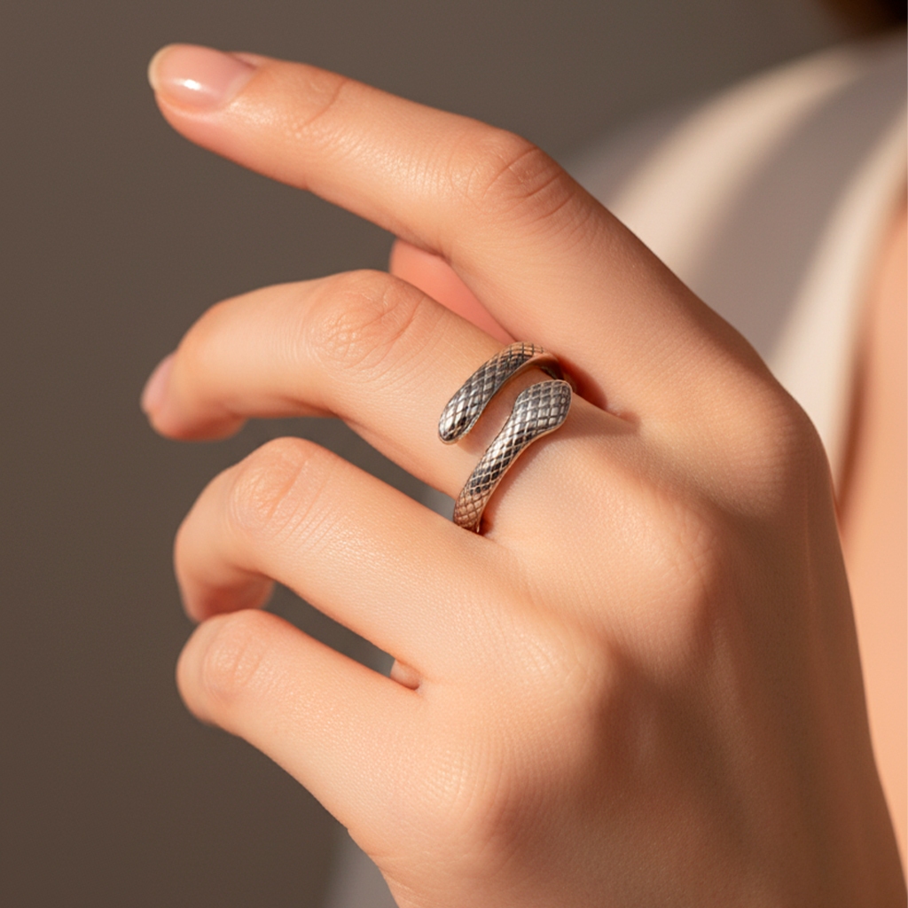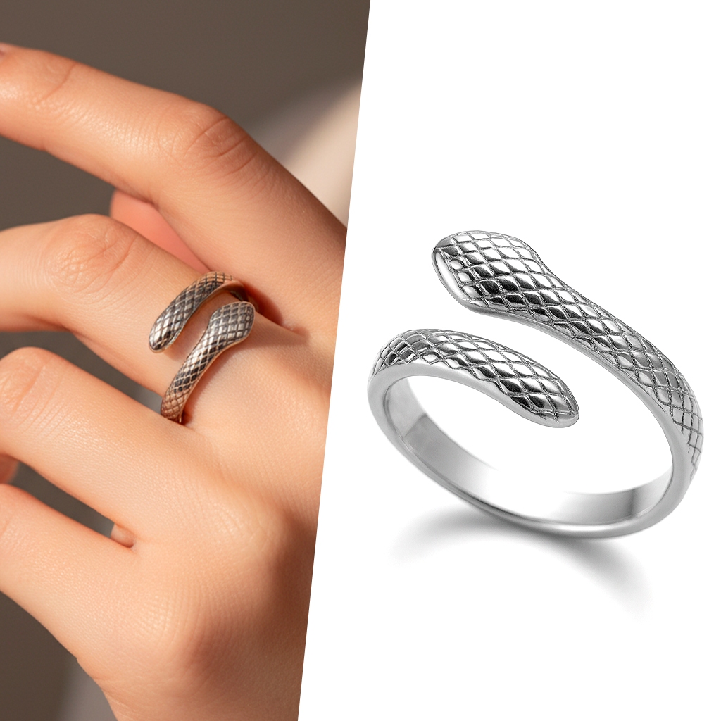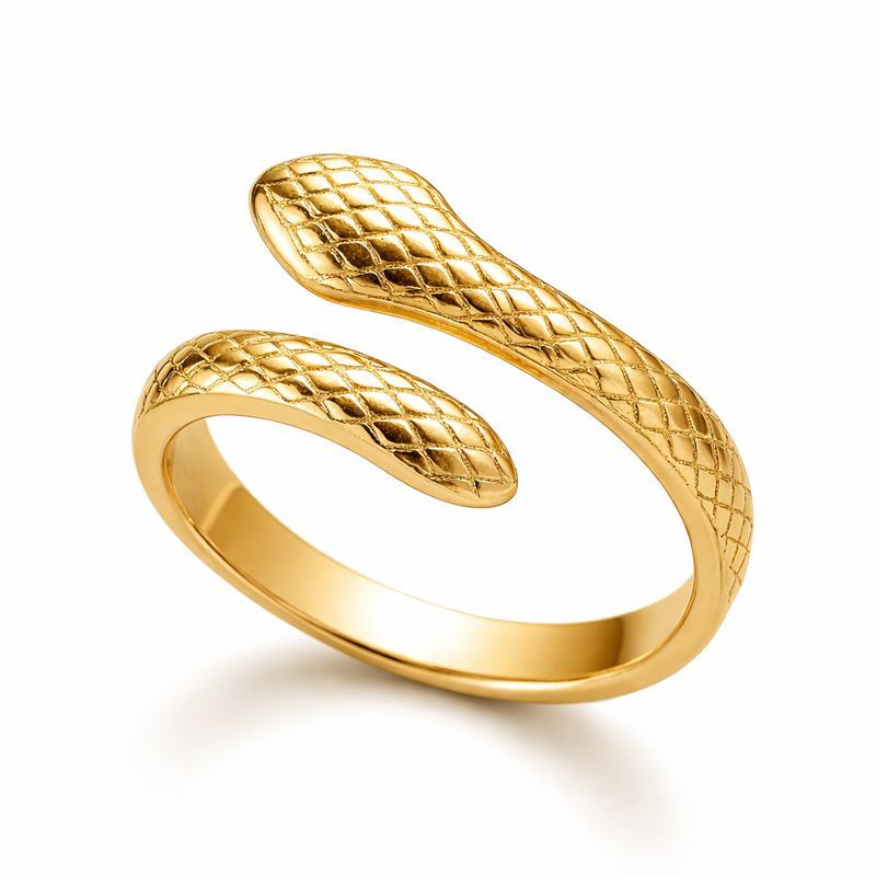 Anel Feminino Cobra Prata ou Dourado de Aço Inoxidável Ajustável