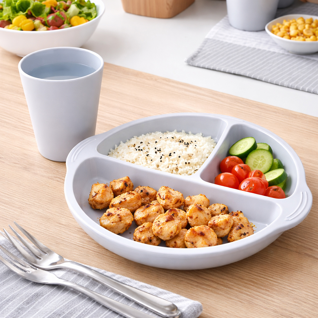 Kit Refeição Simples & Prático – Prato com 3 Divisórias + Copo • Para Refeições Organizadas do Dia a Dia