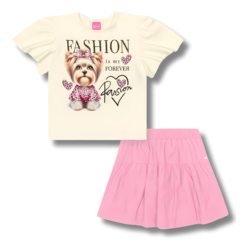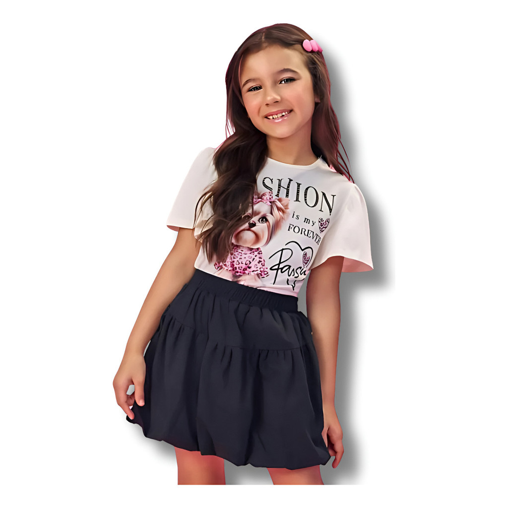 Conjunto Infantil Menina Cinti Blusa Fashion E Saia